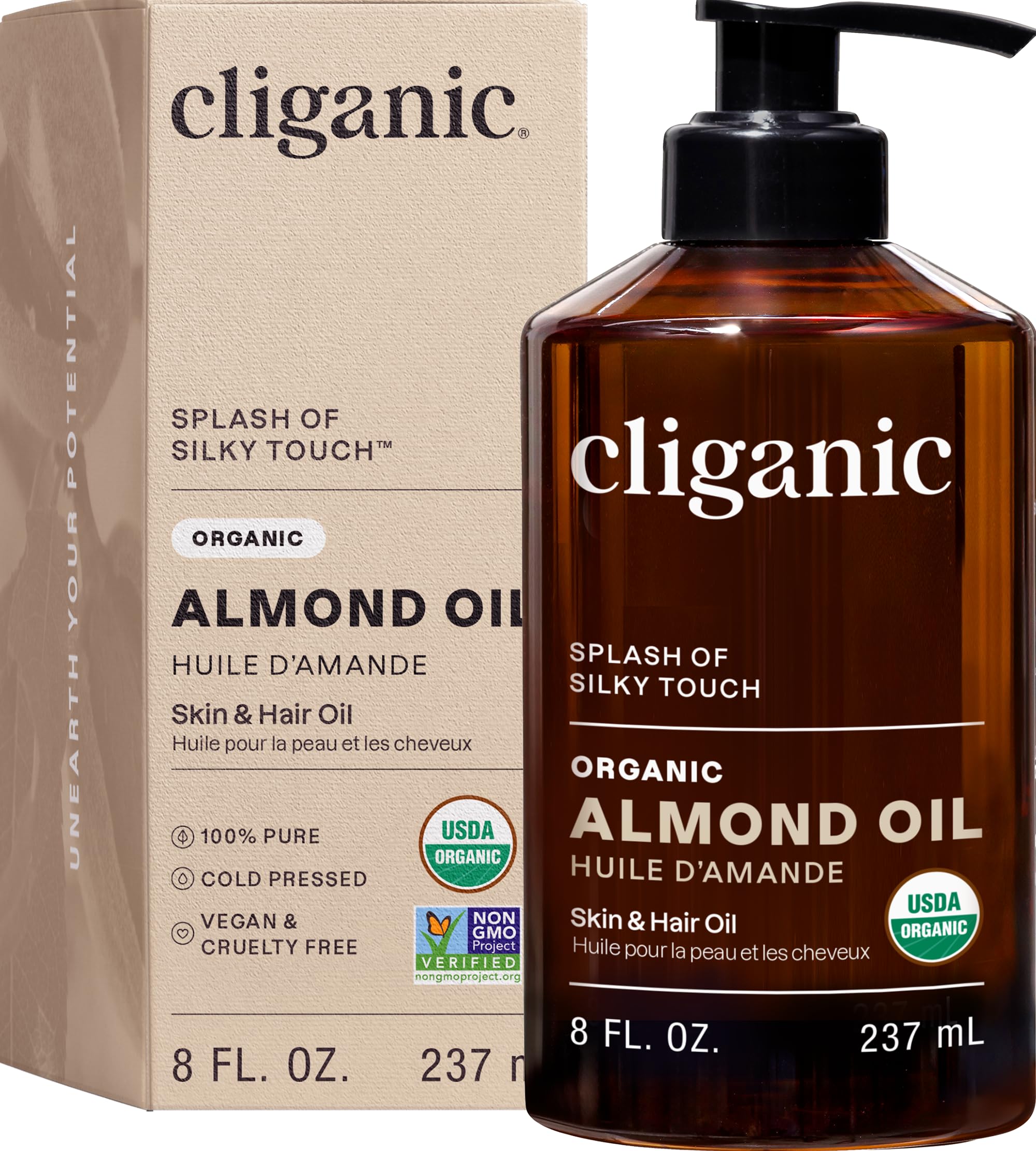 Non-GMO Certified, Vegan And Cruelty-free - Cliganic Organic Almond Oil is proudly Certified Non-GMO, Certified Vegan and Cruelty-Free. Sustainably Sourced Cold-pressed - Cliganic Organic Almond Oil is derived from the almond nut and is cold-pressed for potency and integrity. Loaded In Skin-serving Vitamins - Cliganic Organic Almond Oil features high concentrations of vitamins A and E to nourish skin. 100 Pure, Single Ingredient Oil - 100 pure, Cliganic Organic Almond Oil is a single-ingredient product. No synthetic additives, ever. Certified Organic Almond Oil - Cliganic Organic Almond Oil is proudly USDA Organic Certified to ensure ultimate quality and integrity.