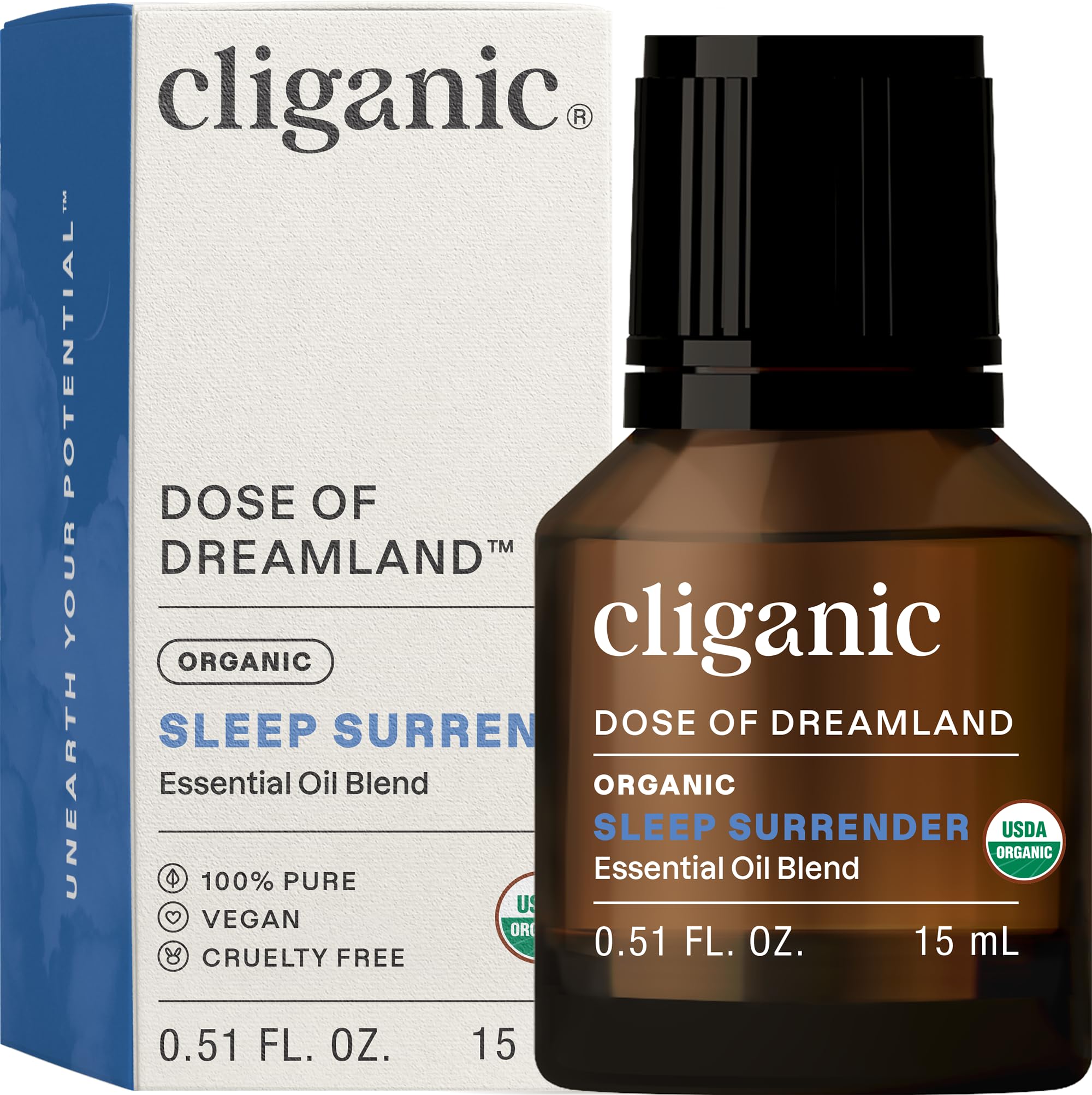 Cliganic Sleep Surrender Organic Essential Oil Blend 0.51 Fl Oz Carefully Crafted with Vetiver Lavender Frankincense Clary Sage Ylang Ylang Marjoram & Spearmint Calming Aromatherapy Oil