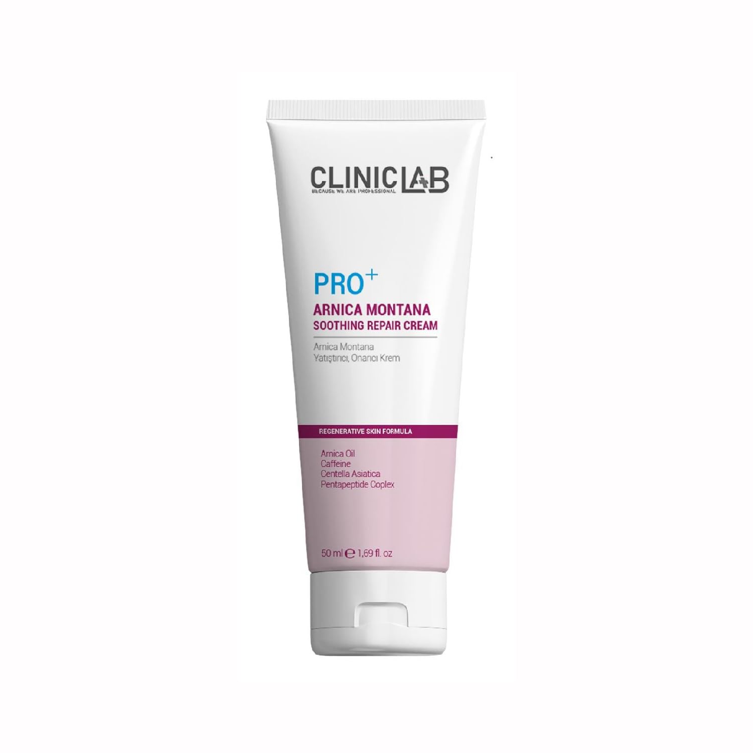 Cliniclab Pro Arnica Montana Soothing Repair Cream 50 mL - (Tube) Thanks to arnica montana and herbal extracts in its content, it nourishes and moisturizes the skin to help eliminate skin sensitivity and deliver vitality and brightness.EXPIRATION DATE: 05.2023-05.2026. Allantoin , Melissa Officinalis Leaf Extract, Hamamelis Virginiana Leaf Extract, Tilia Cordata Flower Extract , Acrylates C10-30 Alkyl Acrylate Crosspolymer, Ethyhexylglycerin, Disodium EDTA, Triethanolamine, Zea Mays Germ Oil, Opuntia Ficus-Indica Extract, Triticum Vulgare Germ Oil, Caprylic Capric Triglyceride, Sodium Carboxymethyl Betaglucan, Phenethyl Alcohol, Maltodextrin, Tocopherol, Imidazolidinyl Urea, Magnolia Biondii Bark Extract, Panthenyl Triacetate, Benzoic Acid, Dehydroacetic Acid, Pentapeptide-48. INGREDIGENTS: Aqua, Paraffinum Liquidum, Glycerin, Cetearyl Alchol, Arnica Montana Flower Oil, Glyceryl Stearate, Ceteareth-20, Dimethicone, Hydrogenated Lecithin, Hydrolyzed Sodium Chondroitin Sulfate, Propylene Glycol, Theobroma Grandiflorum Seed Butter, Petrolatum, Dimethyl Sulfone, Glucosamine Sulfate, Chamomilla Recutita Flower Extract, Phenoxyethanol, Aloe Barbadensis Leaf Juice, Echinacea Purpurea Extract, Calendula Officinalis Flower Extract, Centella Asiatica Extract, Butyrospermum Parkii (Shea) Butter, Caffeine, Zinc PCA, Squalane,. WARNINGS: Used externally. In case of contact with eyes, wash with plenty of water. Keep in a cool, dry place. Keep out of reach of the children. Not suitable for children under 3 years of age. Consult your doctor if you notice an unexpected effect. It is not recommended to use it by people who are sensitive to any substance in the product content. USAGE:Put a sufficient amount of cream on the skin area and apply by gently massaging with circular motions. Do not rinse after applying the product.