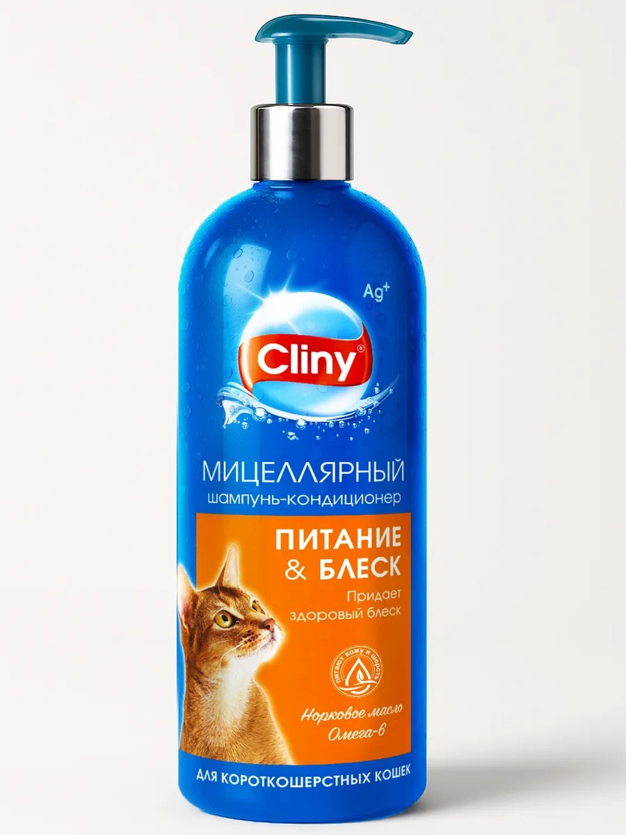 Шампунь-кондиционер Cliny Питание и блеск разработан специально для короткошёрстных кошек: