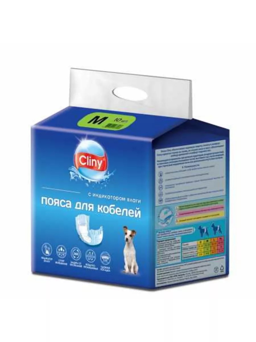 Cliny Пояса для кобелей с индикатором влаги,M, 10 шт. Пояса для кобелей обеспечивают надежную защиту, гигиену и комфорт. Рекомендуется применять при мечении территории, во время путешествий, в стрессовых ситуациях (посещение гостей, выставки и т.д.), после операций, при старческом недержании мочи или длительном отсутствии хозяина. Часто достоинство кобелей не входят в подгузник, а выбор большего размера не решает проблему, т.к. неплотное прилегание пропускает влагу и запах. Особенности физиологии кобелей требуют иной конфигурации гигиенической защиты.