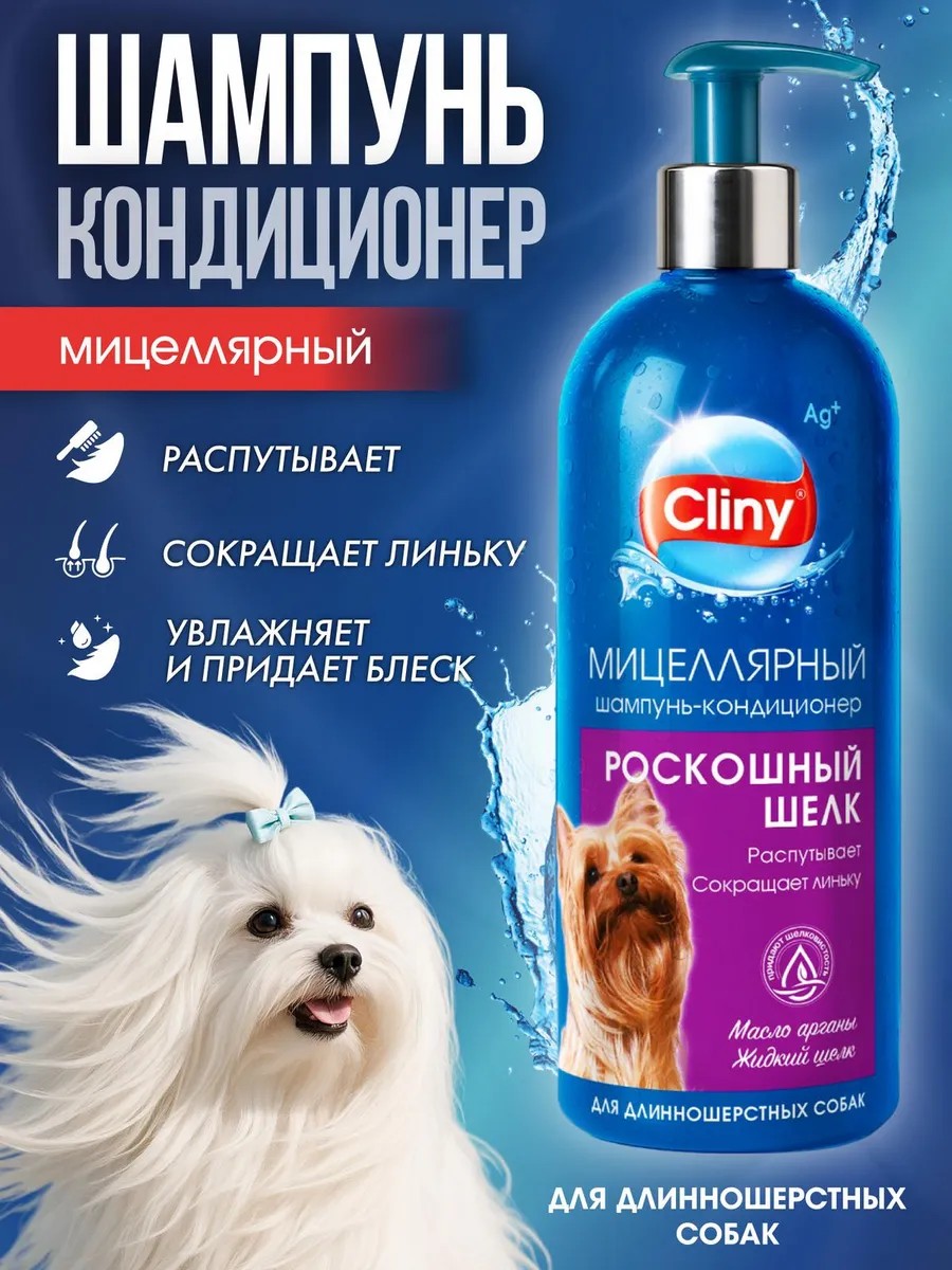Шампунь-кондиционер Cliny Роскошный шёлк разработан специально для длинношёрстных кошек: