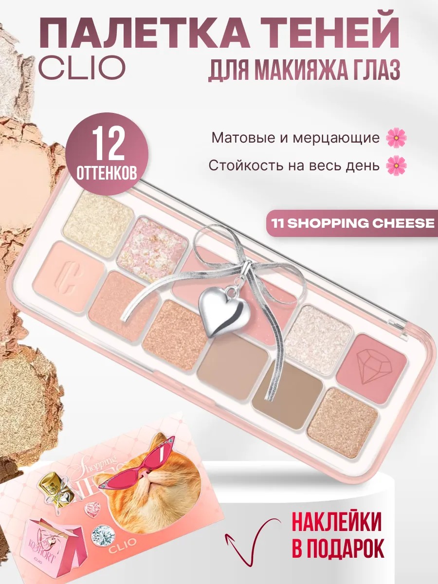 Палетка теней CLIO AIR 11 SHOPPING CHEESE включает насыщенные оттенки.
