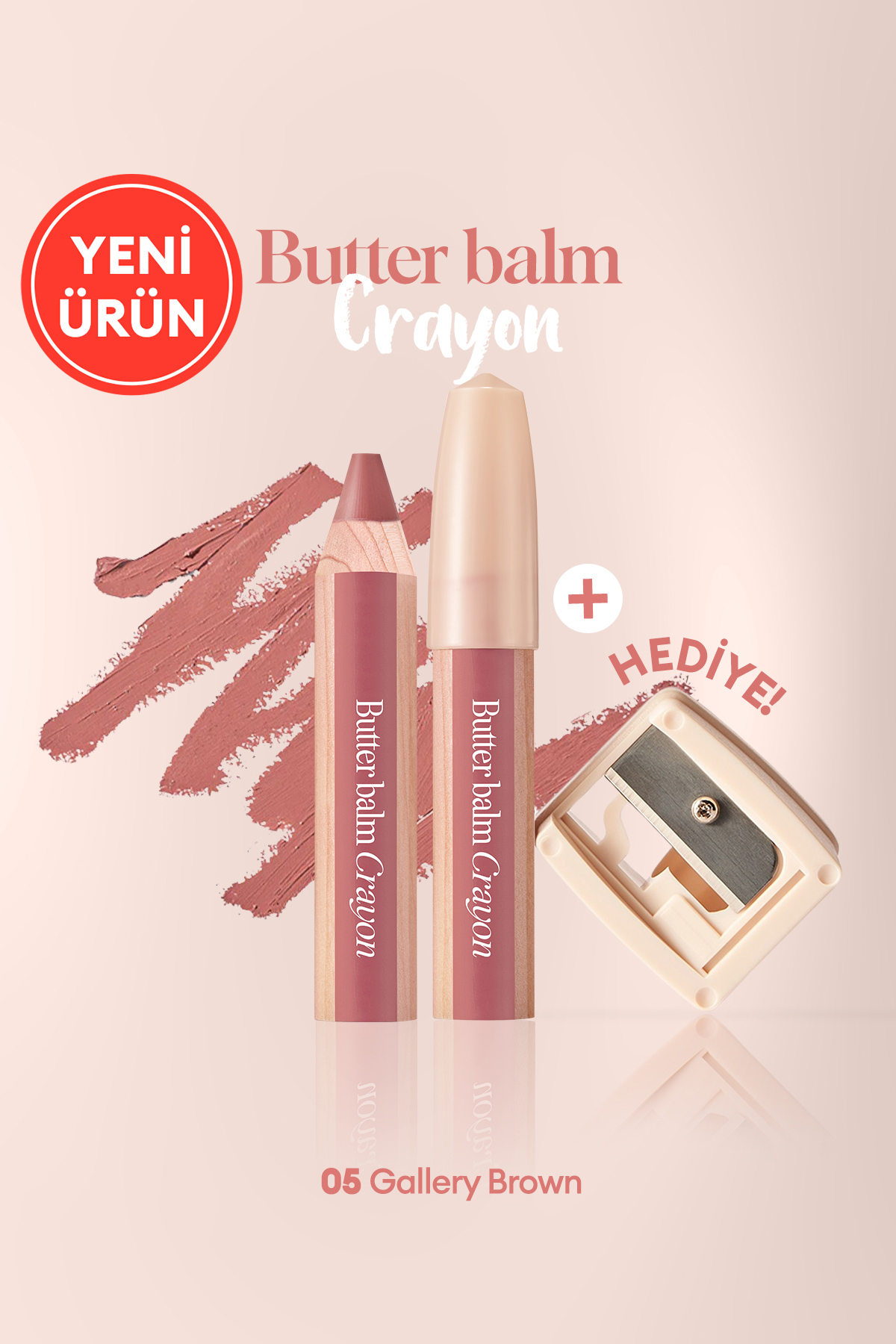 CLIO Creamy Tinted Lip Balm in Pencil Shape & Sharpener CLIO Butter Balm Crayon 005 Gallery Brown