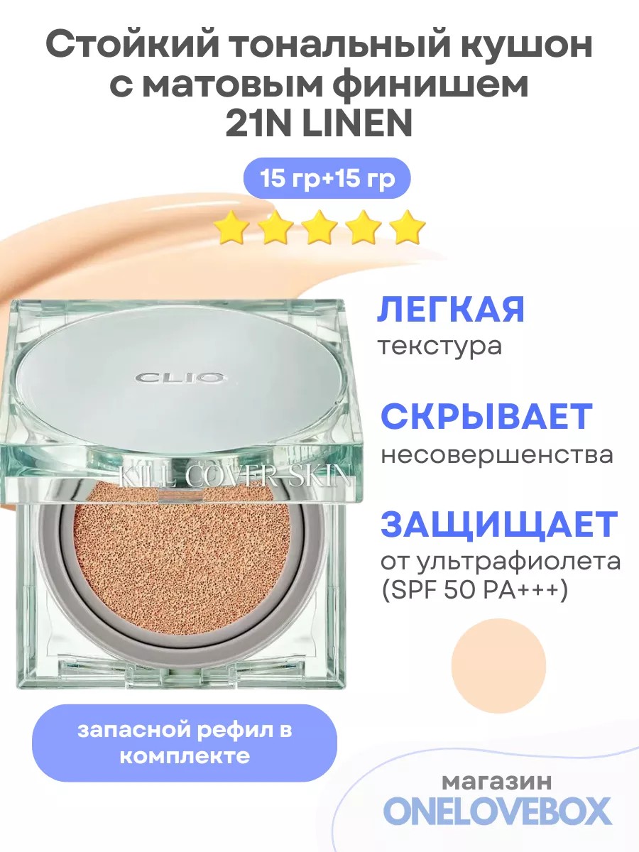 Clio FIXER CUSHION 21N LINEN - Стойкий кушон с матовым финишем