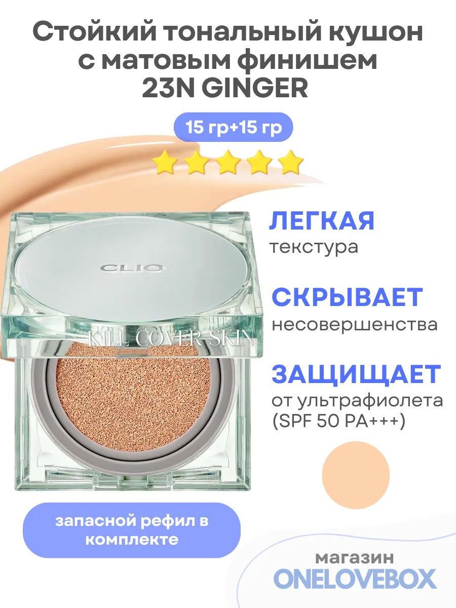 Стойкий фиксирующий корейский кушон CLIO Kill Cover Skin Fixer Cushion SPF50+ PA+++ с матовым финишем делает кожу гладкой и бархатистой.