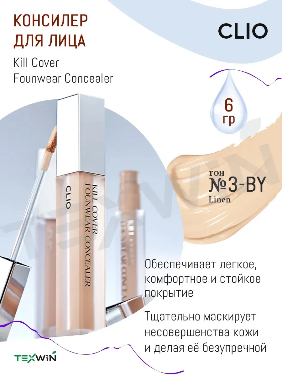 Консилер для лица Kill Cover Founwear Concealer № 3-BY Linen (21 тон) - теплый светло-бежевый подтоном.