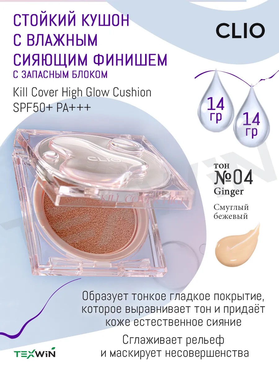 CLIO Стойкий кушон влажный сияющий финиш №4 Ginger SPF50+ PA+++