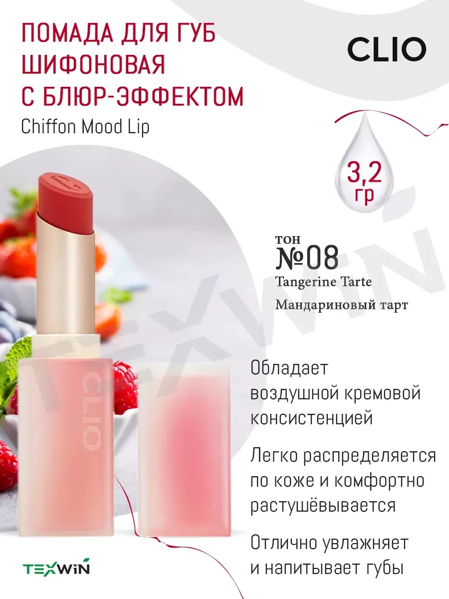 Шифоновая помада для губ с блюр-эффектом CLIO Chiffon Mood Lip с комплексом масел отлично напитывает губы и увлажняет их в течение дня. Обладает воздушной кремовой консистенцией, легко распределяется по коже и комфортно растушёвывается. Универсальный приглушённые оттенки шикарно подойдут для повседневного макияжа.