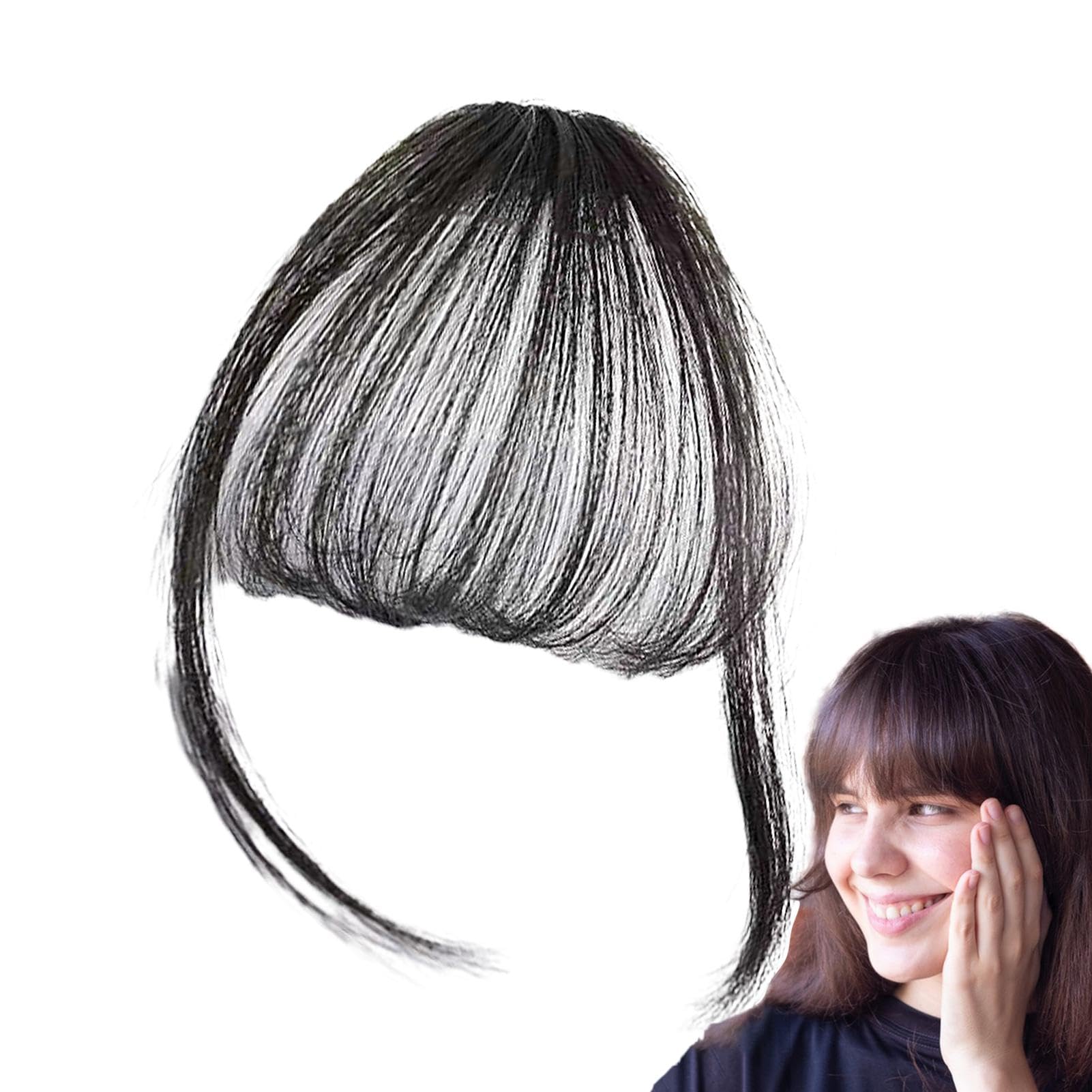 Clip In Bang Hair Extensions Bangs Fake Bang Hairpieces Natural Easy To Use Soft Hair Extensions Bangs For Women And Girls Natural black - with sideburns