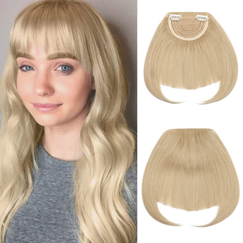 Clip in Bangs Fringe Hair Extensions Thick Full Neat Front Bangs Extension Ombre mix Hair 2 Clips on Bangs Hairpieces Accessories Ash Blonde mix Bleach Blonde