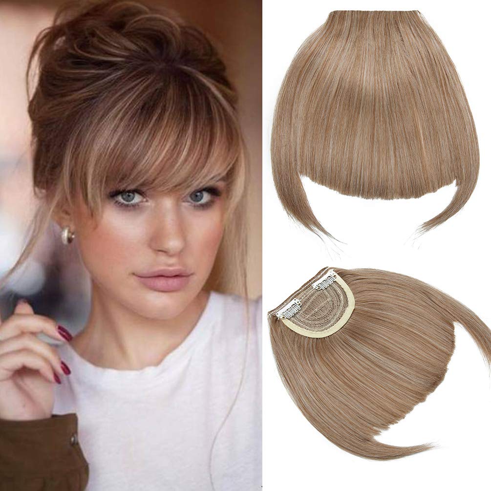 Clip in Bangs Fringe Hair Extensions Thick Full Neat Front Bangs Extension Ombre mix Hair 2 Clips on Bangs Hairpieces Accessories Light Ash Brown mix Bleach Blonde
