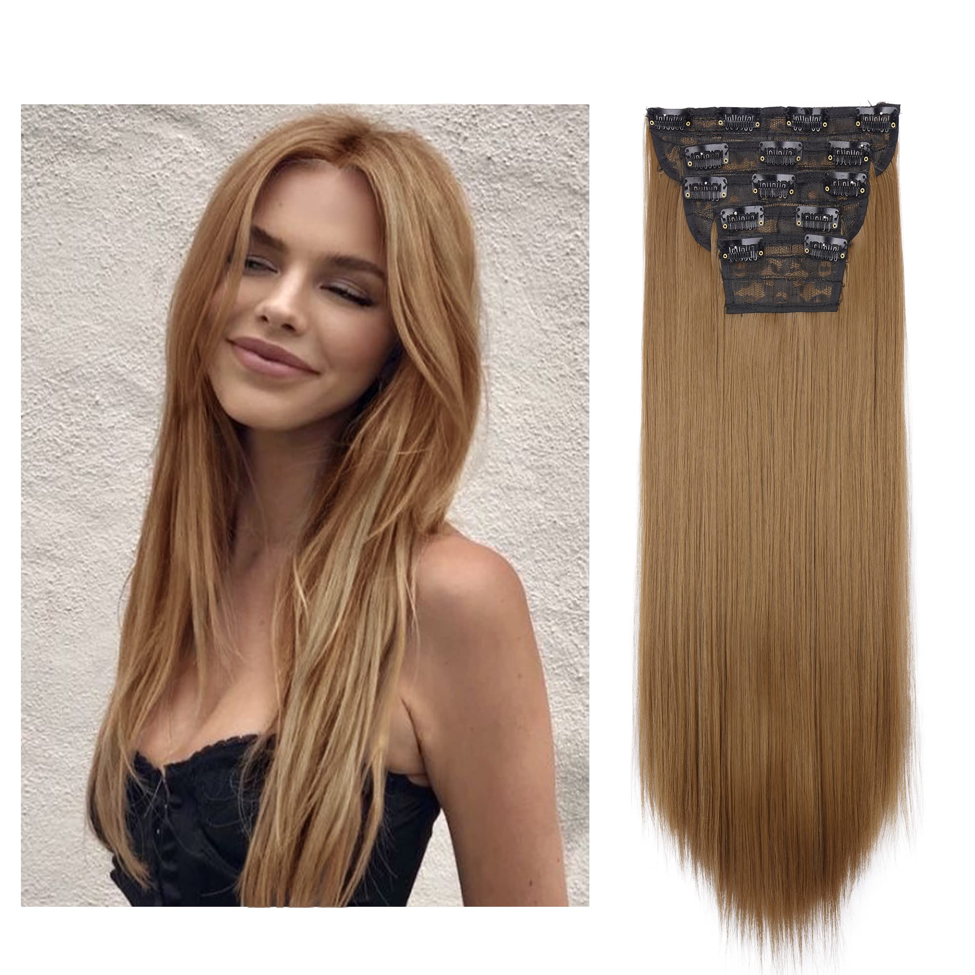 Clip in Extensions Haarverlängerungen, BARSDAR Dickes Haarverlängerung Langes glattes Haarteil 50cm 5-teiliges Set mit vollem Kopf für Frauen Extensions Clip in 27 50cm 27 Erdbeerblond
