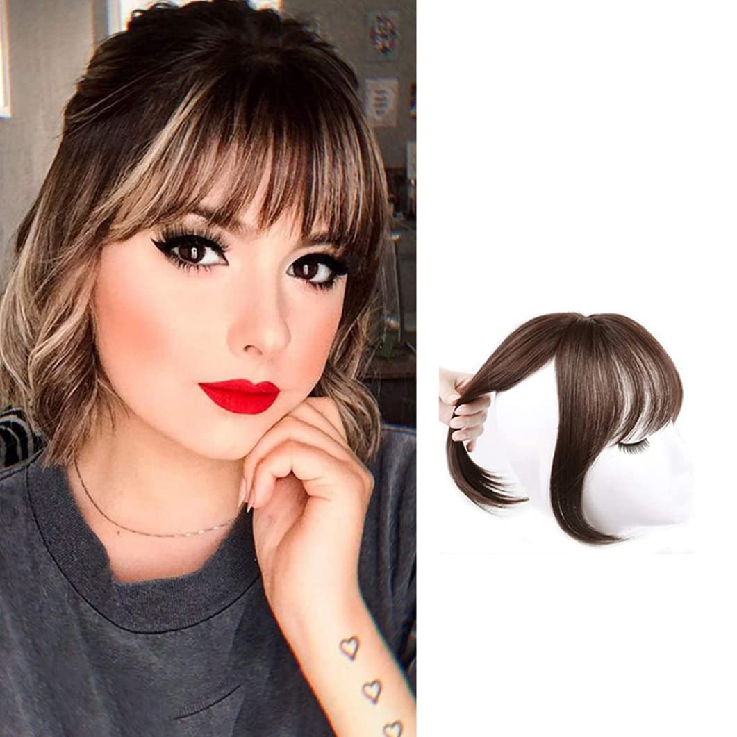 Clip On Bangs, Human Hair Toppers Clip In Crown Toppers Hair For Women Straight Toupee Mid Part Wiglets Hairpieces for Mild Hair Loss Volume Cover Gray Hair (Light Brown, 25 cm) Description: Type: Clip in Hair Extensions fake Hair / Fringe with Side Temple. It looks like real Human Hair, Natural Real Straight Silk, Multiple Wash Life.Light Brown clip in fringe, Thin fringe with temples, this type is very thin hair. It only weighs 3 grams. Please choose thick types if you'd like trim the hair.Easy to Wear, with 1 Clip Invisible, Convenient and Comfortable for All Day Wear. Features:. Air hair. -Color: Light Brown. -Material:High -temperature wire, -Size: about25 cm/9.84 inch. Note: Manual measurement, please allow slight errors on size. The colors may exist slight difference due to different screens. Package Including 1 * Air hair DIRECTIONS To maintain the product, avoid folding when storing. Do not rub vigorously when cleaning; instead, wipe gently and let it dry naturally. To prevent static, use a mixture of water and hair conditioner in a small spray bottle.?PRODUCT ADVANTAGE?Hair toppers add volume and coverage at the top of the head where hair extensions can't reach; clip in design, easy to wear, no hairnet, which can grasp the hair easily and firmly stay on; different from the heavy feeling of wig, lighter and more breathable hair toppers, it's not hot to wear in summer; simulate the effect of human scalp, natural breathable, party, work, daily life can be safely used. ?MAIN FUNCTION?It is adequately siutable for beginning stage hair loss on top, gray hair, thinning hair, high hairline on top of head, make the top middle part look more density, give you an energetic look and get back your confidence. If you have seriour hair loss, hair toppers may not a good choice for you. ?NATURAL LOOKING?Do not look fake or dorky. After wearing it,in your hair will have a more realistic effect.No shedding.It's very comfortable for all day wear. One-piece hair extension design makes it easier to wear. After wearing this hair extension, hiding the fringe edge in your hair will have a more realistic effect. ?OCCASIONS?Perfect for halloween, concerts, theme parties, weddings, dating, and any other occasion, use it year-round, whether for costume, fashion, or just for fun. Very stylish design with natural pretty looking and soft touch. You can wear it to parties or for daily use. ?MAINTENANCE & CARDING?Please try to avoid folding when storing the product, extrusion, to avoid distortion of the hair toppers; do not rub vigorously when cleaning, wipe gently, just let it dry naturally; because it is made of High -temperature wire, to prevent static, a mixture of water and hair conditioner in a small spray bottle can be used.e can be used.