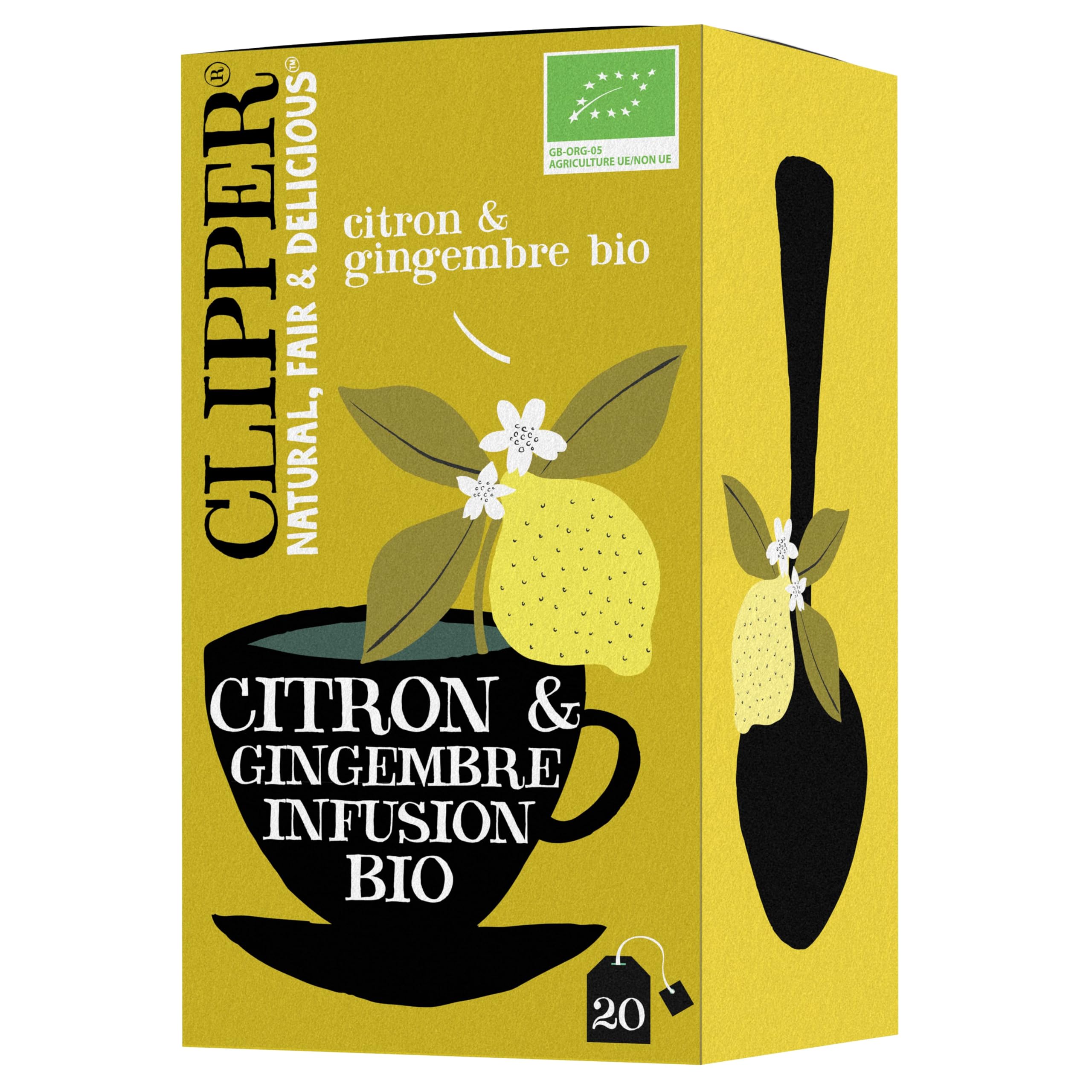Launched in 1984 in England, Clipper is a tea brand that combines naturalness, ethics and flavors. More than just a slogan, "Natural, fair and delicious" is the common thread that guides every decision of the company. Clipper is above all a vast range of teas and infusions designed without artificial ingredients or GMOs, but that's not all! Committed to the planet, the Clipper brand packages its products in unbleached, plastic-free, biodegradable bags, whose string is made of 100 recyclable cotton. Each sachet is packaged in a paper envelope, then a recyclable and biodegradable cardboard box. Everything is manufactured in a CO2 neutral factory which recycles 98 of its waste! Respecting the environment as much as all the workers in its production chain, Clipper has been involved in fair trade since 1994. Today, it is the largest buyer of fair trade tea in the world. The brand alone supports more than 114,000 producers and their families. Offering high-quality drinks, the Clipper Tea range consists of teas carefully concocted by true masters in the field who create delicious blends from aromas and ingredients selected and assembled with care. No wonder Clipper drinks are so good and have won multiple awards! Clipper's ginger and lemon infusion is a succulent blend of tasty ingredients to consume throughout the day for a refreshing and delicious break. Labeled AB (Organic Agriculture), it contains only natural ingredients specially chosen to offer you a tasting rich in pleasures: lemongrass, ginger, licorice, lemon and orange peels, hibiscus and natural flavors of ginger and lemon. Weight 50g INGREDIENTS Lemongrass, ginger, licorice, lemon peel, natural flavor DIRECTIONS FOR USE To prepare your lemon ginger infusion, boil water and let it cool for a minute before pouring it over the sachet. Leave to infuse for 3 to 5 minutes. Enjoy your drink. SAFETY WARNING Contains glide u2013 People suffering from hypertension should avoid excessive consumption. DISCLAIMER Non-contractual photography. The above indications are given for information purposes. They are not necessarily exhaustive and cannot replace the information appearing on the product packaging which alone is authentic, and to which you are invited to refer, particularly in the event of food intolerance. NATURAL, ETHICAL, AND DELICIOUS: Made with respect for the planet and producers, Clipper products are made from blends of natural ingredients, designed to ensure each cup is perfect and delicious. PREPARATION TIPS: To prepare your lemon ginger infusion, boil water and let it cool for one minute before pouring it over the tea bag. Let it steep for 3 to 5 minutes. Enjoy your drink! THE CLIPPER INFUSION RANGE: The Clipper infusion range consists of original recipes that come in a wide range of flavors and varieties: classic, gourmet, detox, relax, and many more. NATURAL AND ORGANIC RECIPE: This Clipper infusion is made without GMOs or artificial components from natural ingredients and flavors from organic farming. A natural recipe for an exceptional taste! CLIPPER LEMON GINGER INFUSION: Perfect for taking a break at any time of day, Clipper's lemon ginger infusion is organic, ethical, and as refreshing as it is delicious and spicy. Lancée en 1984 en Angleterre, Clipper est une marque de thé qui allie naturalité, éthique et saveurs. Plus qu'un simple slogan "Natural, fair and delicious" est le fil conducteur qui guide chaque décision de la société. Clipper, c'est avant tout une vaste gamme de thés et d'infusions conçue sans ingrédients artificiels ni OGM, mais ce n'est pas tout ! Engagée pour la planète, la marque Clipper conditionne ses produits en sachets non blanchis, sans plastique, biodégradables, dont la ficelle est en 100 coton recyclable. Chaque sachet est emballé dans une enveloppe en papier, puis une boîte en carton recyclables et biodégradables. Le tout est fabriqué dans une usine neutre en CO2 qui recycle 98 de ses déchets ! Respectant autant l'environnement que l'ensemble des travailleurs de sa chaîne de production, Clipper s'investit dans le commerce équitable depuis 1994. Aujourd'hui, il s'agit du plus gros acheteur de thé équitable au monde. À elle seule, la marque soutient plus de 114 000 producteurs et leurs familles. Proposant des boissons de haute qualité, la gamme Clipper Tea se compose de thés concoctés minutieusement par de véritables maîtres en la matière qui créent des mélanges délicieux à partir d'arômes et d'ingrédients sélectionnés et assemblés avec soin. Pas étonnant que les boissons Clipper soient si bonnes et saluées par de multiples récompenses ! L'infusion au gingembre et au citron de Clipper est un succulent mélange d'ingrédients savoureux à consommer tout au long de la journée pour faire une pause rafraîchissante et délicieuse. Labellisée AB (Agriculture Biologique), elle ne contient que des ingrédients naturels spécialement choisis pour vous offrir une dégustation riche en plaisirs : de la citronnelle, du gingembre, de la réglisse, des écorces de citron et d'orange, de l'hibiscus et des arômes naturels de gingembre et citron. Poids 50 g INGRÉDIENTS Citronnelle, gingembre, réglisse, ecorce de citron, arôme naturel MODE D'EMPLOI Pour préparer votre infusion citron gingembre, faites bouillir de l'eau et laissez-la refroidir une minute avant de la verser sur le sachet. Laissez infuser durant 3 à 5 minutes. Savourez votre boisson. AVERTISSEMENT DE SÛRETÉ Contient de la r glisse u2013 les personnes souffrant d u2019hypertension doivent viter toute consommation excessive. CLAUSE DE NON-GARANTIE Photographie non contractuelle. Les indications ci-dessus sont données à titre d'information. Elles ne sont pas forcément exhaustives et ne sauraient se substituer aux informations figurant sur l'emballage du produit qui font seules foi, et auxquelles vous êtes invités à vous reporter, notamment en cas d'intolérance alimentaire. NATUREL, ÉTHIQUE ET DÉLI
