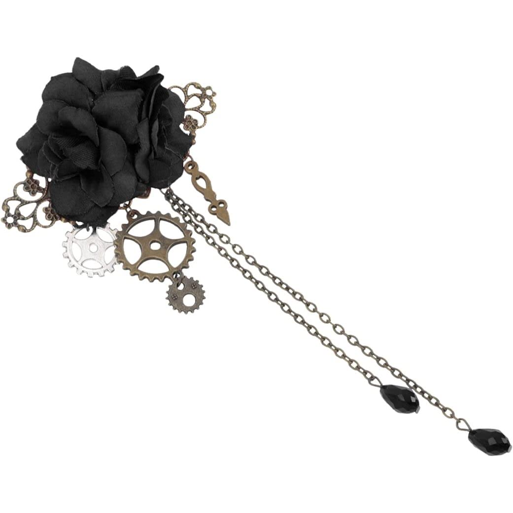 Clips Barrettes Steampunk Hair Clips with Tassels Chain Rose Flower Hair Clip Vintage Halloween Headdress Goth Gothic Hair Accessories for Women Girls Black