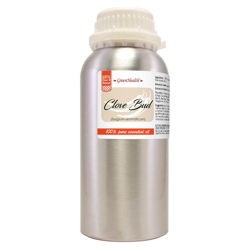 Clove Bud Essential Oil 16 fl oz (473 ml) Aluminum Bottle w/Plug Cap 100% Pure Essential Oil GreenHealth Clove Bud 16 Fl Oz (Pack of 1)