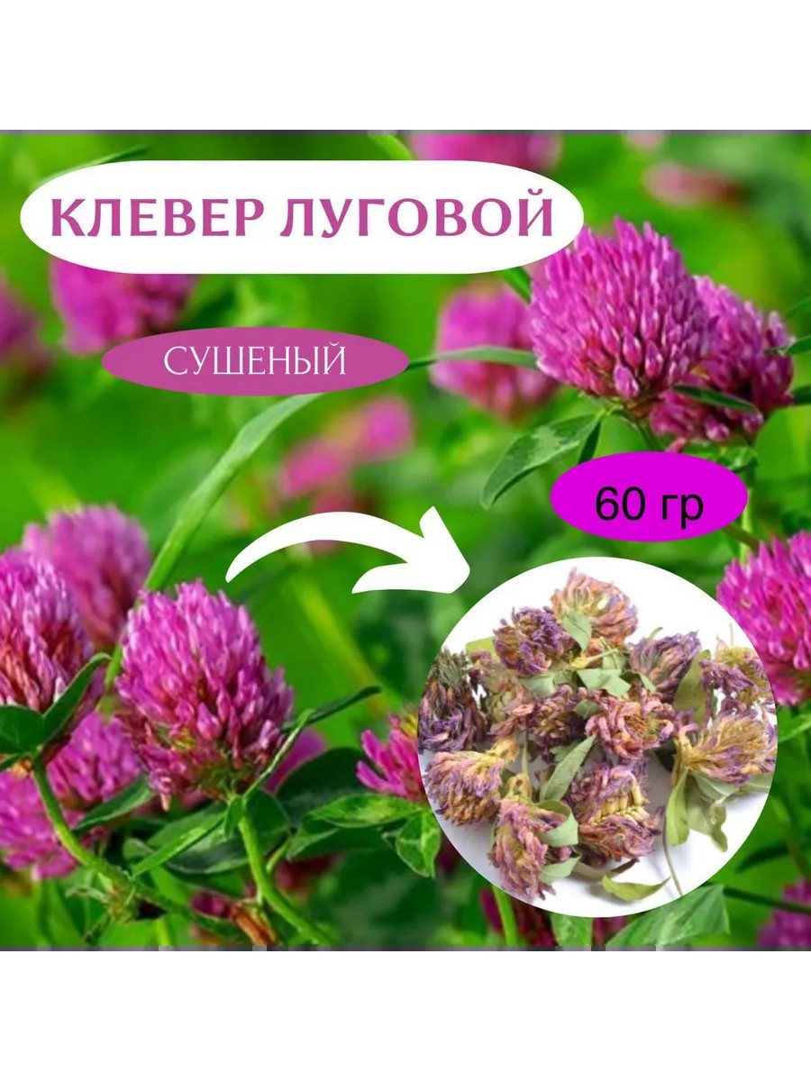 Цветок клевера, сушеный, луговой красный. Сбор 2025. 60 гр.
