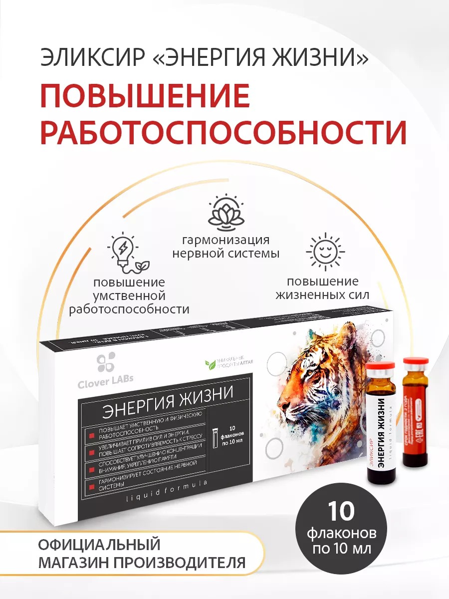 Clover LABs Эликсир Энергия жизни для повышения работоспособности