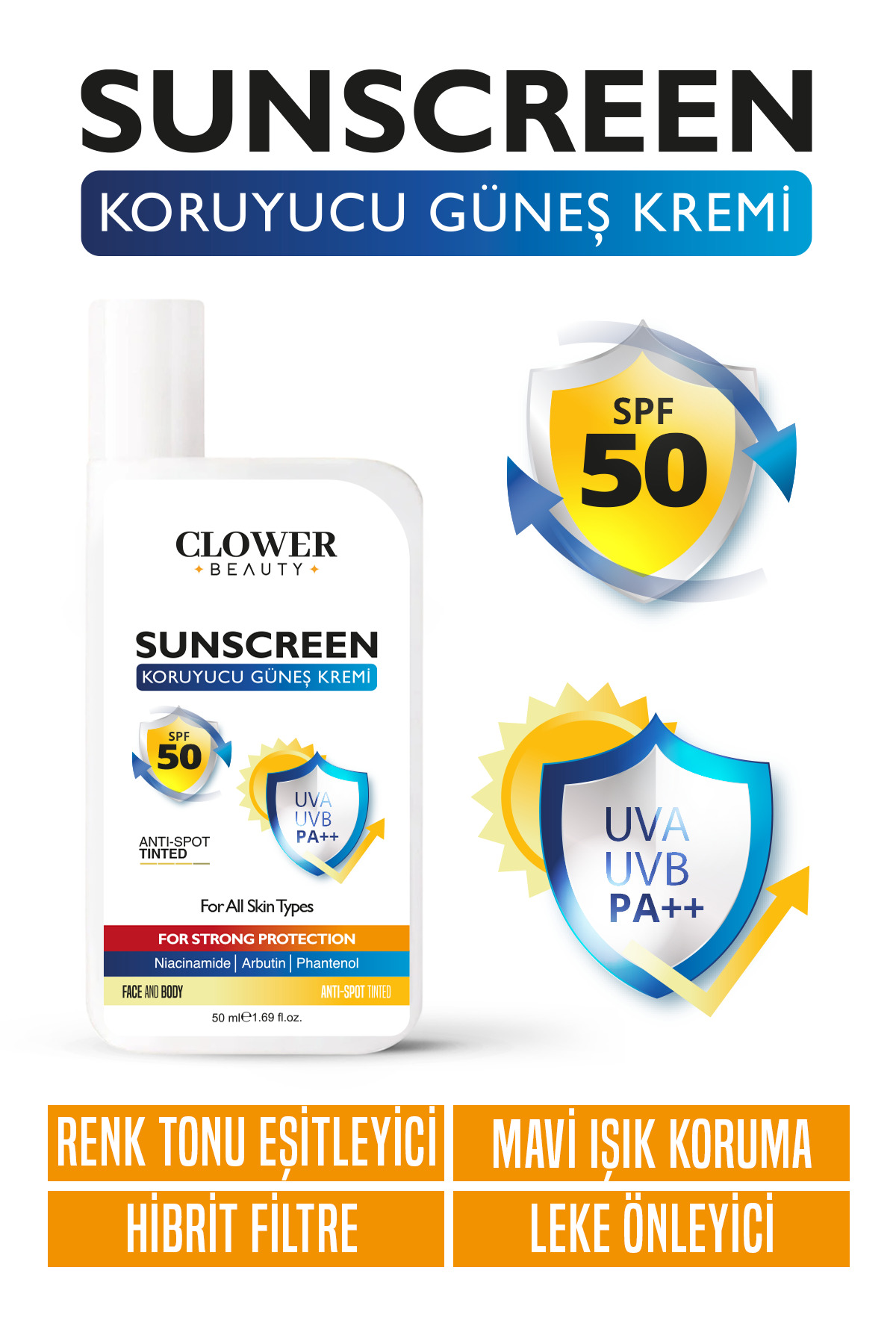 CLOWER BEAUTY Tone Equalizer Brightener Anti-Dark Spot Tinted Concealer 50spf Sun Cream 50ml