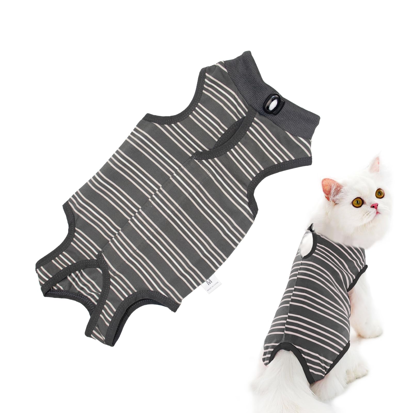 Size measurement: S: weight 1-2 kg, length 23cm, m: weight 2-4 kg, length 28 cm, L: weight 4-7 kg, length 36 cm.Please note the size in the image and make sure that you choose the right size before buying.(Please tolerate an error of 1-2cm due to manual measurement) If you have any problems, please contact us directly.Width applications: The cat clothing for recovery is a professional alternative to a cone and a full body.It is suitable for first aid, hot spots, wounds and association protection, skin conditions, warmth, indispensable and much more.Postopative protection: As an alternative to the anti-losing neck band, the cat recreational shirt can effectively protect your cat's wounds and associations.Block the direct contact of the wound with foreign bodies and accelerate wound healing after the operation, helps to recover effectively to the pets.Easy to carry: The cat clothing for recovery is equipped with an extra long and extra wide Velcro fastener, which enables a comfortable size adjustment.Elastic neck strap on the is simple for wearing.A precise design is used on the limbs of clothing that does not easily fall off the line and is more durable.Breathable and comfortable: the cat recreational suit consists of 95 cotton and 5 spandex.The fabric is equipped with elasticity that is pleasant to wear without restricting.The cat recreational clothing can be used as comfortable household clothes.Größe Messung: S: Gewicht 1-2 kg, Länge 23cm, M: Gewicht 2-4 kg, Länge 28 cm, L: Gewicht 4-7 kg, Länge 36 cm. Bitte beachten Sie die Größe im Bild und stellen Sie sicher, dass Sie die richtige Größe vor dem Kauf wählen. (Bitte dulden Sie einen Fehler von 1-2cm aufgrund manueller Messung) Bei Problemen wenden Sie sich bitte direkt an uns. Breite Anwendungen: Die Katze-Kleidung für Genesung ist eine professionelle Alternative zu einem Kegel und einem vollständigen Körperverband. Es ist für Erste Hilfe, Heißflecken, Wunden und Verbandsschutz, Hautkonditionen, Wärme, Unenthaltsamkeit und vieles mehr geeignet. Postopativer Schutz: Als Alternative zum Anti-Leck-Halsband, kann das Katzen-Erholungsshirt die Wunden und Verbände Ihrer Katze effektiv schützen. Blockieren sie den direkten Kontakt der Wunde mit Fremdkörpern und beschleunigen sie die Wundheilung nach der Operation, hilft effektiv den Haustieren zu erholen. Einfach zu Tragen: Die Katze-Kleidung für Genesung ist mit einem extra langen und extra breiten Klettverschluss ausgestattet, der eine bequeme Größenanpassung ermöglicht. Elastischer Nackenriemen auf der ist einfache für Tragen. An den Gliedmaßen der Kleidung wird ein präzises Design angewendet, das nicht leicht von der Linie fällt und langlebiger ist. Atmungsaktiv und Bequem: Der Katzen-Erholungsanzug besteht aus 95 Baumwolle und 5 Spandex. Der Stoff ist mit Elastizität ausgestattet, die angenehm zu tragen ist, ohne einzuschränken. Die Katzen-Erholungskleidung kann als bequeme Hauskleidung verwendet werden.CGLRybO Katzenbody Nach Op Anti-leckende Cat Professional Recovery Anzug Hunde Katze Kleidung Nach Kastration Alternative Chirurgischer Erholungsanzug für Bauchwunden oder Hautkrankheiten Gestreift-Grau Medium