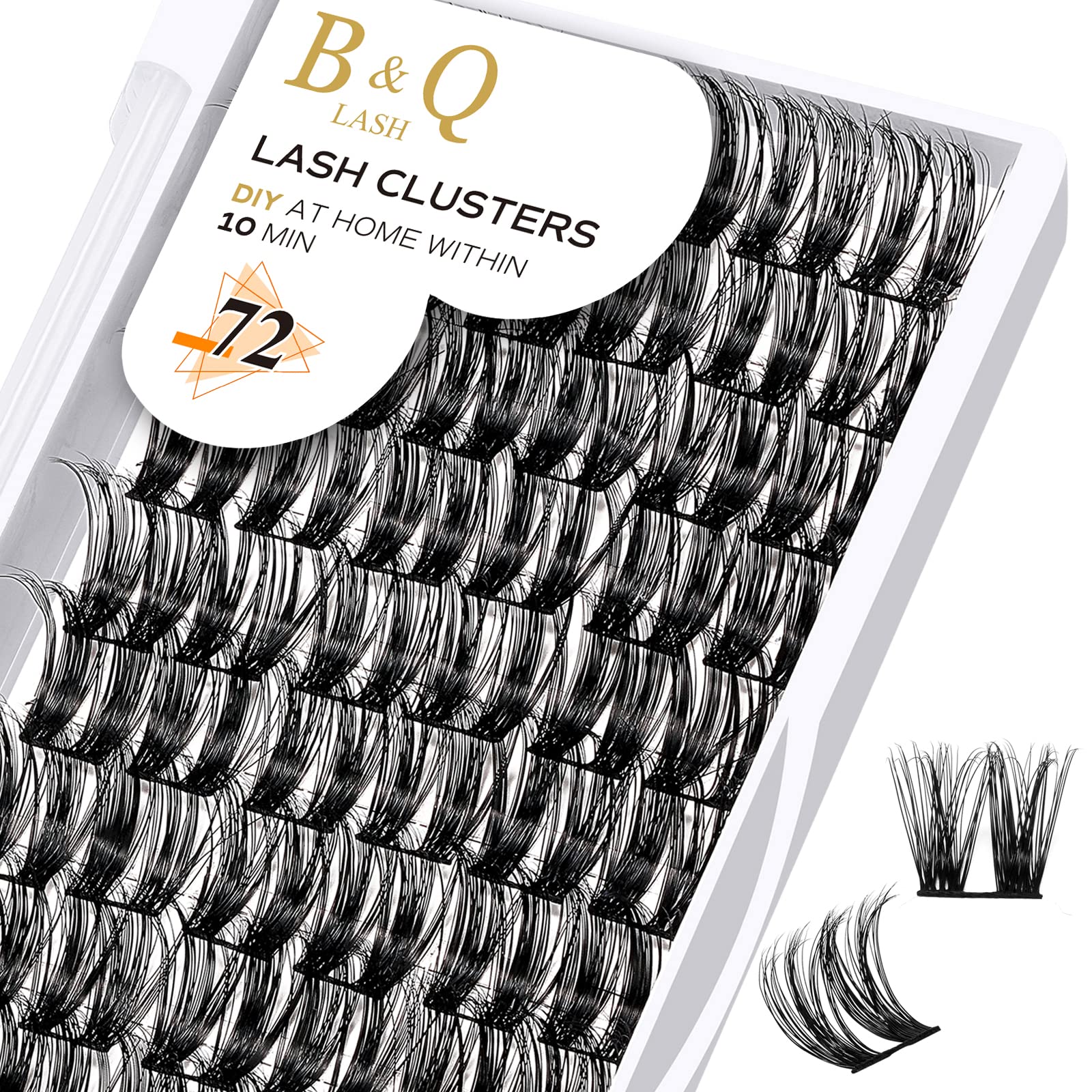 FRIENDLY AFTER-SALES CUSTOMER SERVICE: Clear response to customer questions and problem is crucial. We offer a lifetime money-back guarantee with every purchaser and have the wholesale price, any needs please contact us by FB IG: bqlash. We will reply to your message as soon as possible. Happy shopping!. NEW STYLE NEW POSSIBILITY: The lashes individual cluster are great for a natural look or glam look. You can apply DIY lashes in ascending order which gives a nice cat-eye effect—different sizes for different sections to choose from. The DIY lash extensions blend effortlessly with other lengths and your own lashes and match more possibilities. SUITABLE TO WEAR: Use a tweezer to pinch the band of cluster eyelash extensions and apply lash clusters below your natural lashes. You can barely feel the cluster lashes. The bottom of the clusters is flat and hardly noticeable. The cluster lashes mixed length band part will not stab your eyelid area when you blink. Bring you a perfect experience during lash application. GREAT QUALITY: B Q cluster lashes look real, not plasticky, and reusable with proper care. Easy to take off and these eyelash clustersswill not be broken when getting them off the backing with tweezers. The individual lashes cluster last for weeks. Soft, lightweight, vegan, knot-free, and matte dark. DIY CLUSTER LASHES AT HOME: 72 clusters lashes in one tray. You can apply individual cluster lashes at home by yourself. Easy to put lashes on, gorgeous results, and lash clusters are not easily fall apart. Cluters take less time to complete each eye. Now save so much money and time.