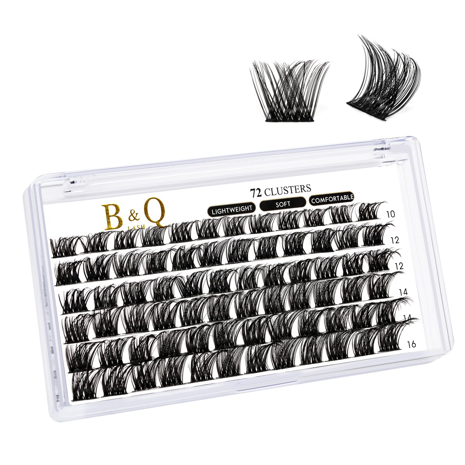 FRIENDLY AFTER-SALES CUSTOMER SERVICE: Clear response to customer questions and problem is crucial. We offer a lifetime money-back guarantee with every purchaser and have the wholesale price, any needs please contact us by FB IG: bqlash. We will reply to your message as soon as possible. Happy shopping!. NEW STYLE NEW POSSIBILITY: The lashes individual cluster are great for a natural look or glam look. You can apply DIY lashes in ascending order which gives a nice cat-eye effect—different sizes for different sections to choose from. The DIY lash extensions blend effortlessly with other lengths and your own lashes and match more possibilities. SUITABLE TO WEAR: Use a tweezer to pinch the band of cluster eyelash extensions and apply lash clusters below your natural lashes. You can barely feel the cluster lashes. The bottom of the clusters is flat and hardly noticeable. The cluster lashes mixed length band part will not stab your eyelid area when you blink. Bring you a perfect experience during lash application. GREAT QUALITY: B Q cluster lashes look real, not plasticky, and reusable with proper care. Easy to take off and these eyelash clustersswill not be broken when getting them off the backing with tweezers. The individual lashes cluster last for weeks. Soft, lightweight, vegan, knot-free, and matte dark. DIY CLUSTER LASHES AT HOME: 72 clusters lashes in one tray. You can apply individual cluster lashes at home by yourself. Easy to put lashes on, gorgeous results, and lash clusters are not easily fall apart. Cluters take less time to complete each eye. Now save so much money and time.