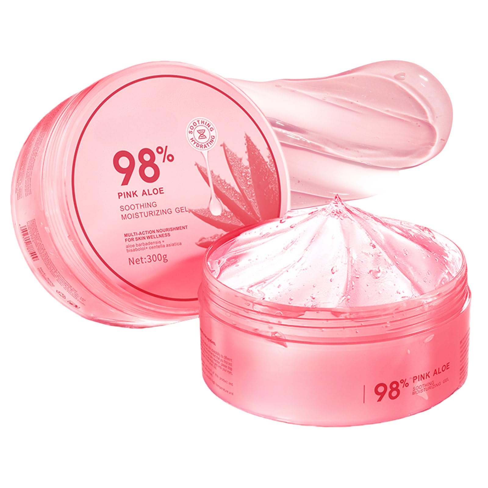Name: Pink Aloe Vera Gel Set Net Weight: 300 g 10.58 ounce Features: This pink aloe vera gel gently moisturizes and nourishes the skin, building a moisture barrier and improving dryness and tightness. It effectively soothes sun-damaged skin, leaving it feeling soft and supple. ? Replenishes skin and hair moisture, leaving skin with a natural glow. ? Refreshing and non-greasy, it absorbs easily without leaving a sticky feeling. ? It won't burden the skin, is highly skin-friendly, and leaves skin feeling comfortable. ? Suitable for all skin types, it's an ideal choice for your daily skincare routine. ? It soothes and calms skin after sun exposure or on sun-exposed areas. ? It provides comprehensive care for your hair, skin, and scalp, regardless of the season. How To Use 1. After cleansing, apply an appropriate amount to the skin and gently massage until absorbed. 2. Can be used as an overnight face mask for all-night hydration. Suitable for all skin types, leaving skin feeling refreshed, moisturized, soothed, and cool. 3. Can also be used as an after-sun repair mask and face cream.GENTLE AND NATURAL FORMULA: This aloe vera gel uses natural aloe vera ingredients, is gentle and non-irritating, and suitable for all skin types. It contains no harmful chemicals, helping to care for skin and hair while providing long-lasting moisturizing and soothing effects, suitable for the care needs of any skin condition, especially after-sun care. MULTI-FUNCTIONAL FULL-BODY CARE: The pink aloe vera gel is ideal for full-body care, providing moisture and soothing for the face, body, and hair. This is a multi-functional skincare product suitable for daily use, helping to repair skin and hair damage, allowing you to enjoy freshness and comfort all day long. REFRESHING AND NON-GREASY: The lightweight texture of the pink aloe vera gel absorbs quickly after application, leaving no sticky residue and providing a long-lasting refreshing feel. Whether in the hot summer or other seasons, enjoy a water-like cooling sensation and maintain the skin's moisture balance. Aloe Vera Gel for Hair and Scalp: This aloe vera gel is not only suitable for the face and body but also moisturizes the scalp, relieving dryness and discomfort. It deeply nourishes the scalp, effectively improving dryness and itching, leaving your hair healthier, shinier, and free from dryness and static. Aloe Vera Gel for Sunburn Relief: This pink aloe vera gel quickly relieves the burning sensation of sun-damaged skin, soothes sensitive areas, and leaves skin feeling refreshed and comfortable. Made with natural aloe vera extract, it's oil-free, absorbs quickly, and restores skin's softness and smoothness, helping to relieve discomfort caused by sun exposure.