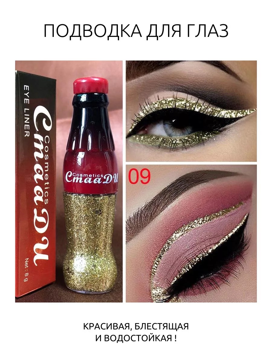 CmaaDu Подводка для глаз с блестками (Платина Белый антик) 09