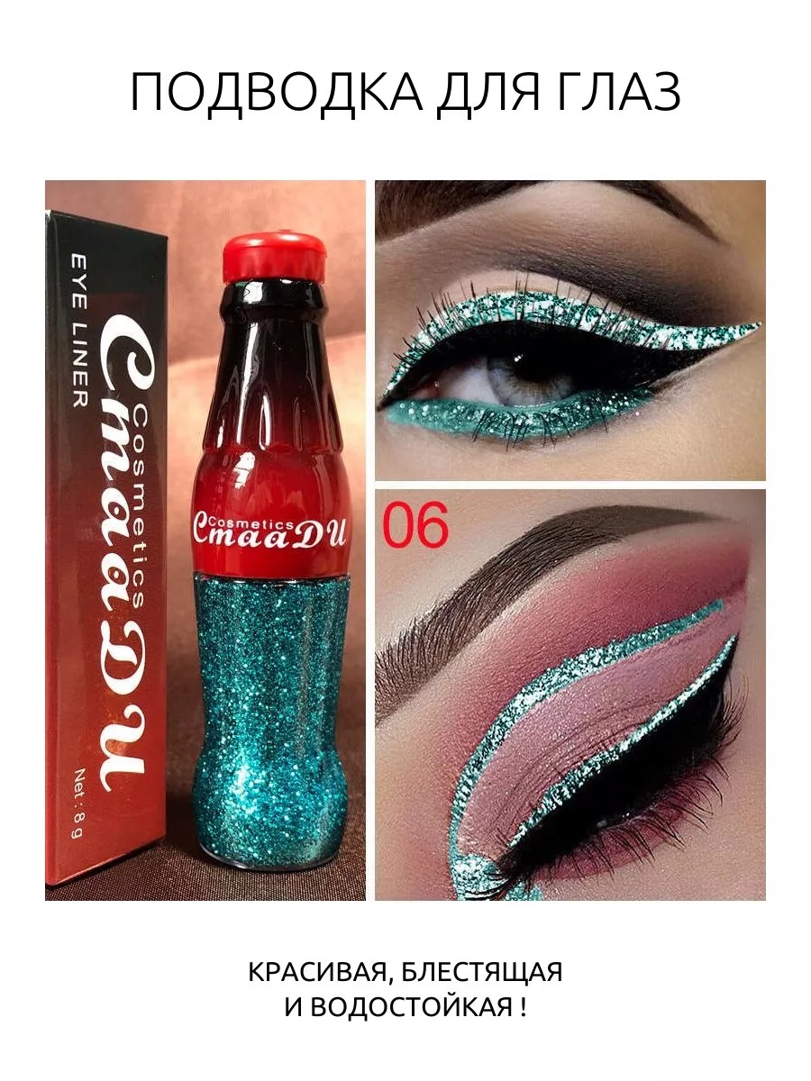 CmaaDu Подводка для глаз с блестками (Бирюзовый Тиффани) 06