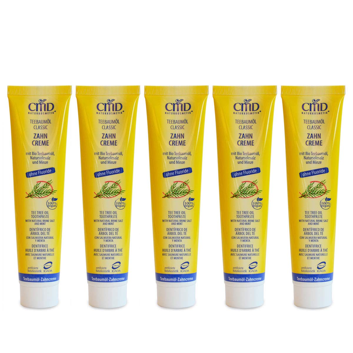 CMD Teebaumöl (5 X 75 Ml), Milde Bio Zahnpasta, Vegan, Fluoridfrei, Naturkosmetik