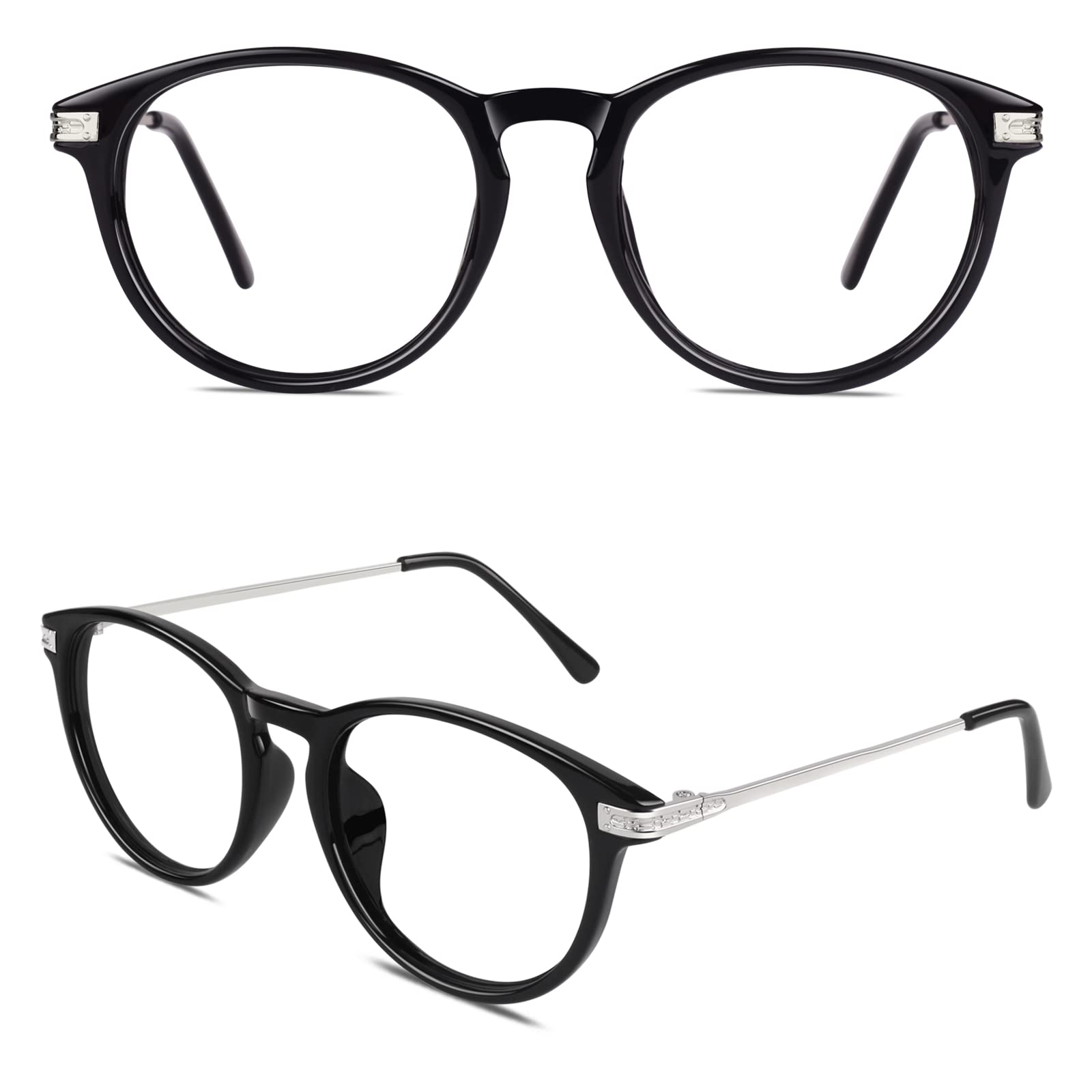 CGID CN79 Classic nerd glasses ellipse 40s 50s panto glasses vintage look clear lens glossy black