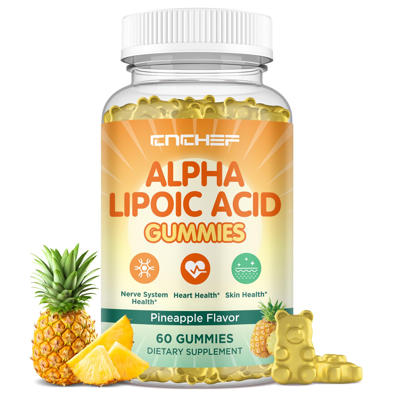 Excellent After-Sales Support and Service Commitment:? CNCHEF brand stands firmly behind this Liposomal Alpha Lipoic Acid formula. We are dedicated to ensuring a positive shopping experience and provide responsive customer support. Should you have any questions, please feel free to contact us, and our team is committed to responding within 24 hours. Conscious, Sugar-Free Formulation:? These gummies are formulated with health-conscious consumers in mind, containing 0g of Total Sugars and 0g of Added Sugars. They are sweetened with Xylitol and feature natural pineapple flavor, maintaining a low calorie count of 12 per serving. Antioxidant Essential Nutrient Boost:? Beyond the B vitamins, each serving provides 10,000mcg of Biotin for skin and hair health, 100mg of antioxidant Coenzyme Q-10, and 100mg each of Vitamins C and E, offering significant antioxidant protection and cellular support. Potent B-Vitamin Complex for Metabolic Nerve Support:? The formula features exceptionally high levels of key B vitamins per serving: 100mg of Vitamin B1, 1.8mg of Vitamin B6, and 400mcg of Vitamin B12. This complex is crucial for energy metabolism, cognitive function, and the maintenance of a healthy nervous system. High-Potency Core Ingredient Comprehensive Blend:? Each serving of 2 gummies delivers a robust 600mg of Alpha-lipoic acid, the primary active compound. This is supported by a broad-spectrum formula that includes a potent Vitamin B Complex (B1, B6, B12), Biotin, Coenzyme Q-10, Vitamin C, and Vitamin E, designed for multifaceted wellness support.
