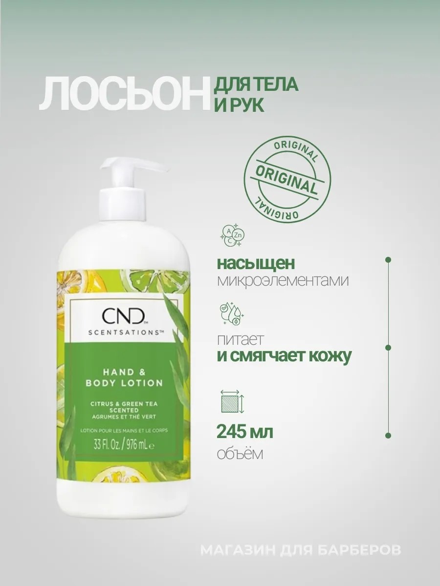 Лосьон для рук и тела Scentsations с запахом лимона и зеленого чая. Лосьоны для рук и тела Scentsations превращают обычную процедуру маникюра в спа наслаждение. Многообразие сезонных ароматов сможет удовлетворить даже требовательных клиентов.