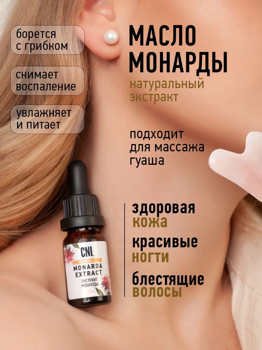 Масло монарды натуральный экстракт- универсальное средство для решения проблем ногтей, волос, а также кожи рук, ног и головы. Глубоко увлажняет и смягчает кутикулу, делает ногти здоровыми и ухоженными. Является природным антисептиком и оказывает антибактериальное и восстанавливающее действие, оно подходит в качестве поддерживающего средства при лечении онихолизиса и грибковых поражений, а также при реабилитации вросших ногтей. Стоп онихолизис превосходно подойдет для массажа во время педикюра и маникюра. А также в качестве дополнения к антифунгалу. Используют в качестве укрепляющего средства для волос. Делает их послушными, крепкими и здоровыми, придает им блеск. Питает кожу головы. Борется с перхотью и выпадением. Увлажняет и питает сухие и ломкие кончики. Подходит для ухода за бородой. Идеально для массажа гауша, борется с акне и снимает воспаление, устраняет сухость и регулирует работу сальных желез. Можно использовать как эфирное масло для дома в аромалампу. Продукт от CNI произведен путем экстракции СО2. Отличие такого метода в том, что при CO2-экстракции не используется тепло, поэтому компоненты не подвергаются риску перегрева. Такой состав богаче и аромат ближе к натуральному запаху.