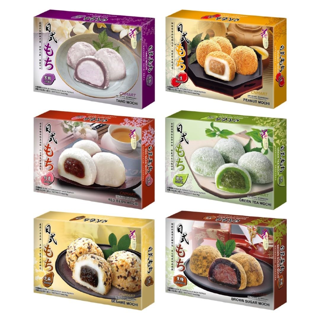 CNMART Assorted Japanese Style Mochi Gift Set 6 Flavours 210g (Pack of 6) - Traditional Soft Rice Cake