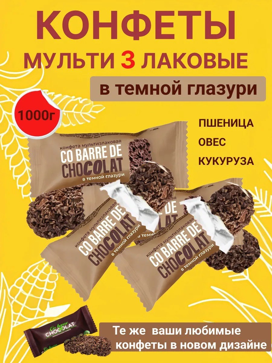co barre de chokolat 1 кг Конфеты мультизлаковые с темной глазурью