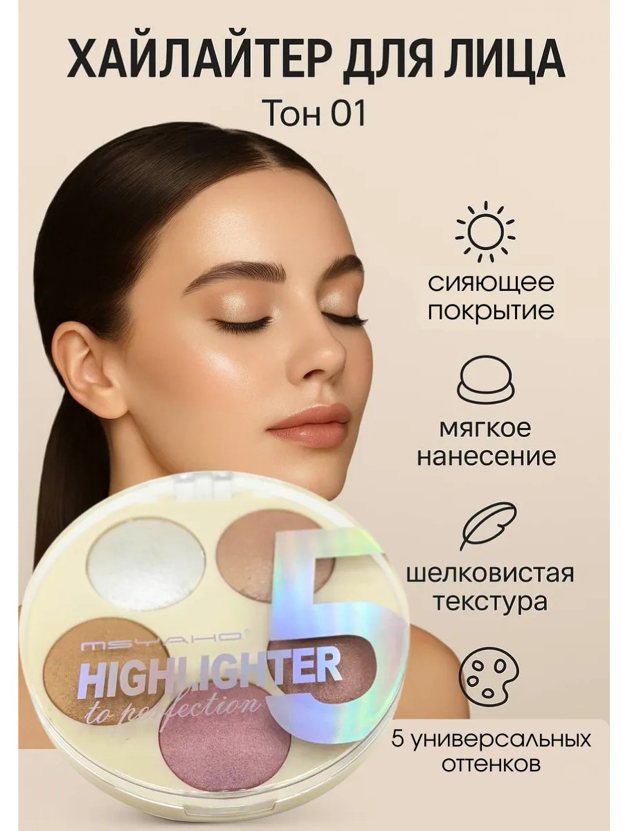 | Комплектация | хайлайтер для лица палетка 5 оттенков |