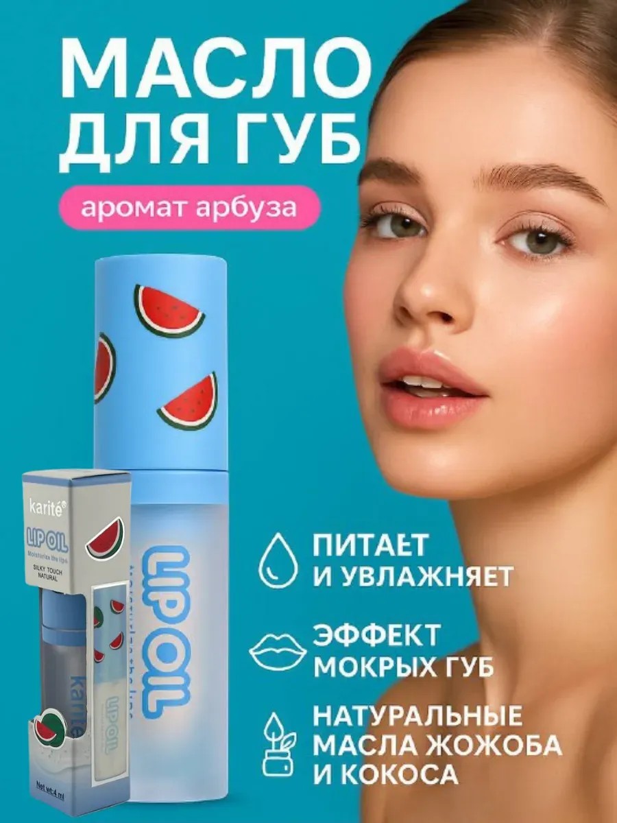 блеск для губ, увлажнение губ, питательное масло, karité lip oil, средство для сухих губ, косметика для губ, уходовая косметика, арбузный аромат, база под помаду.