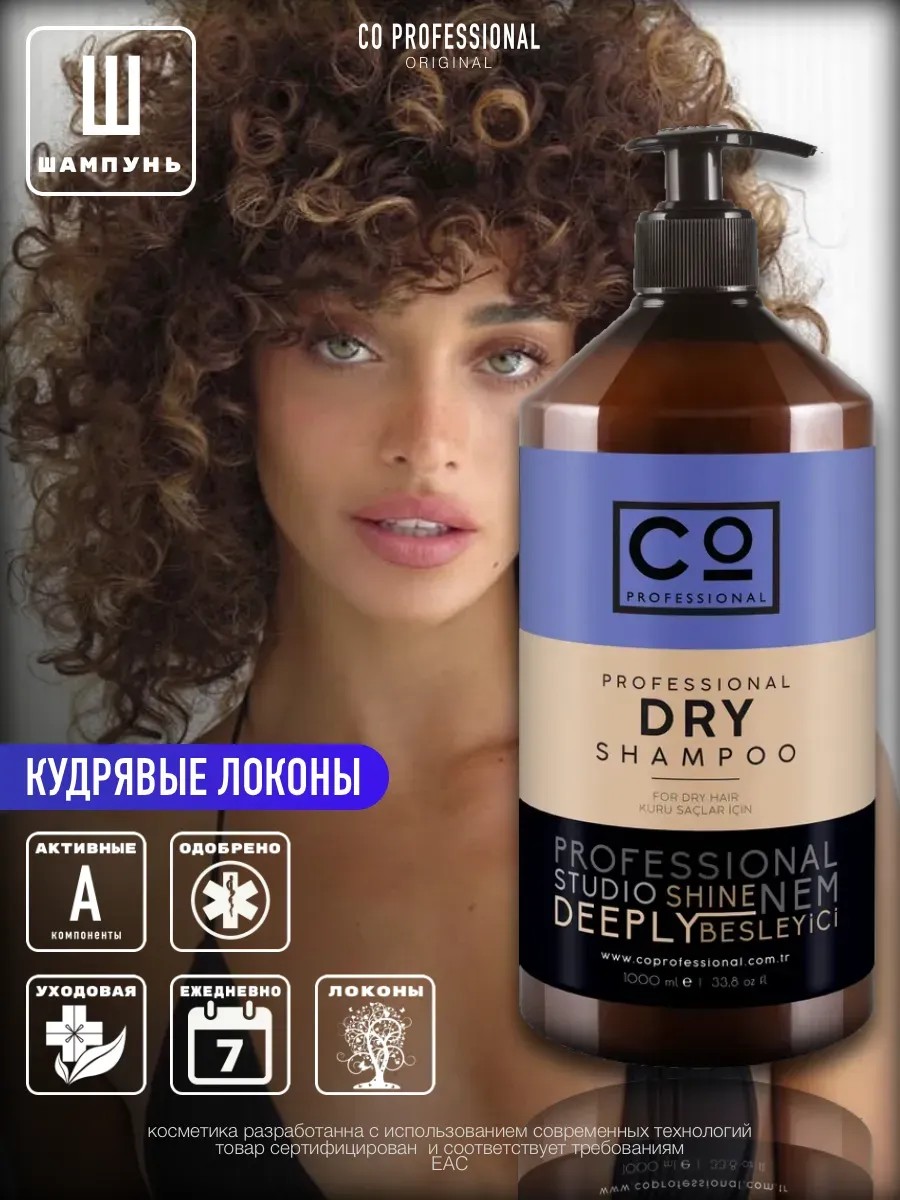 Профессиональный шампунь для сухих, кудрявых и вьющихся волос CO Professional (1000 мл) – интенсивное увлажнение и восстановление