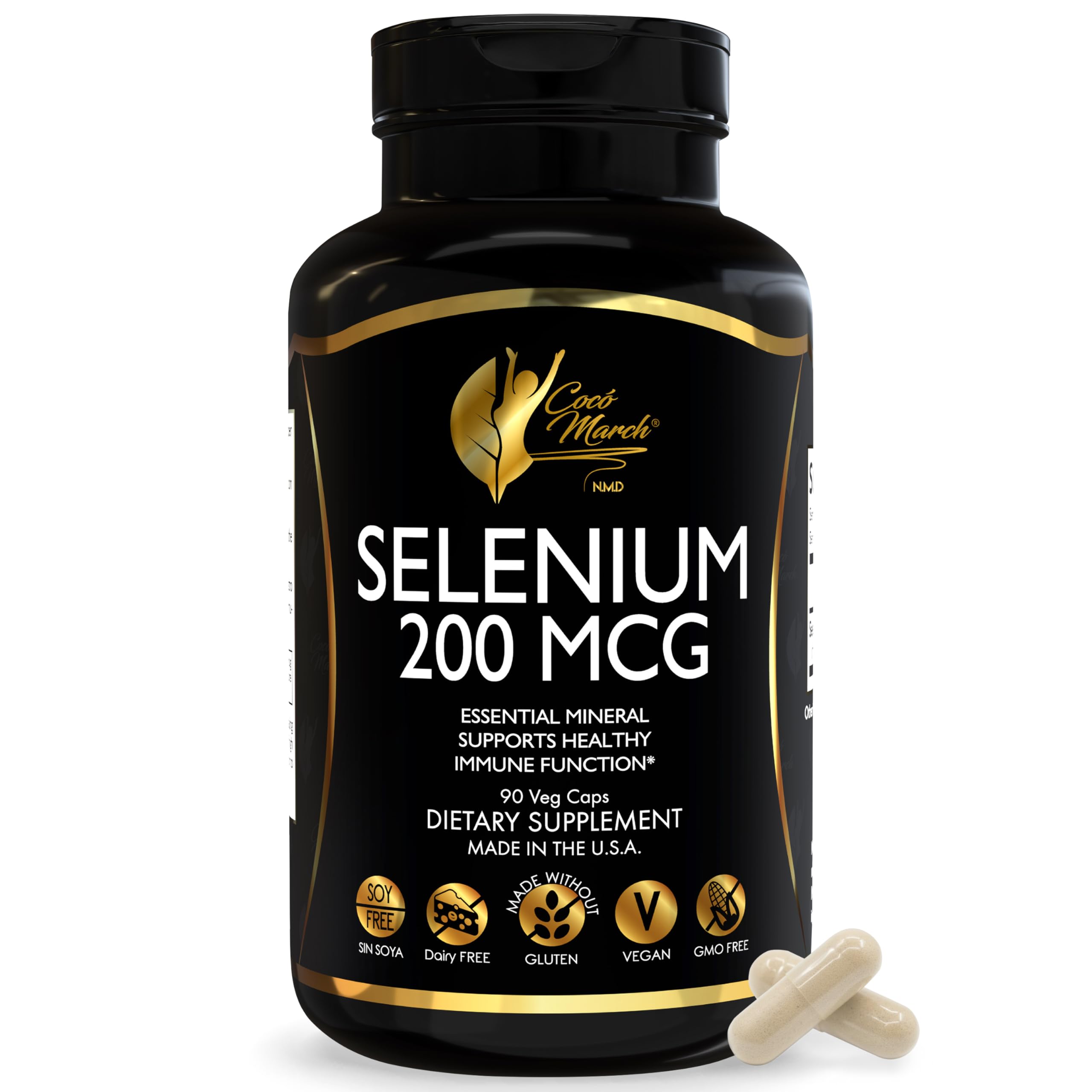 Coc March N.M.D. Selenium 200 mcg Thyroid & Immune Support Supplement Essential Mineral for Metabolism & Antioxidant Defense Gluten Free, Dairy Free & Vegan 3 Month Supply, 60 Capsules