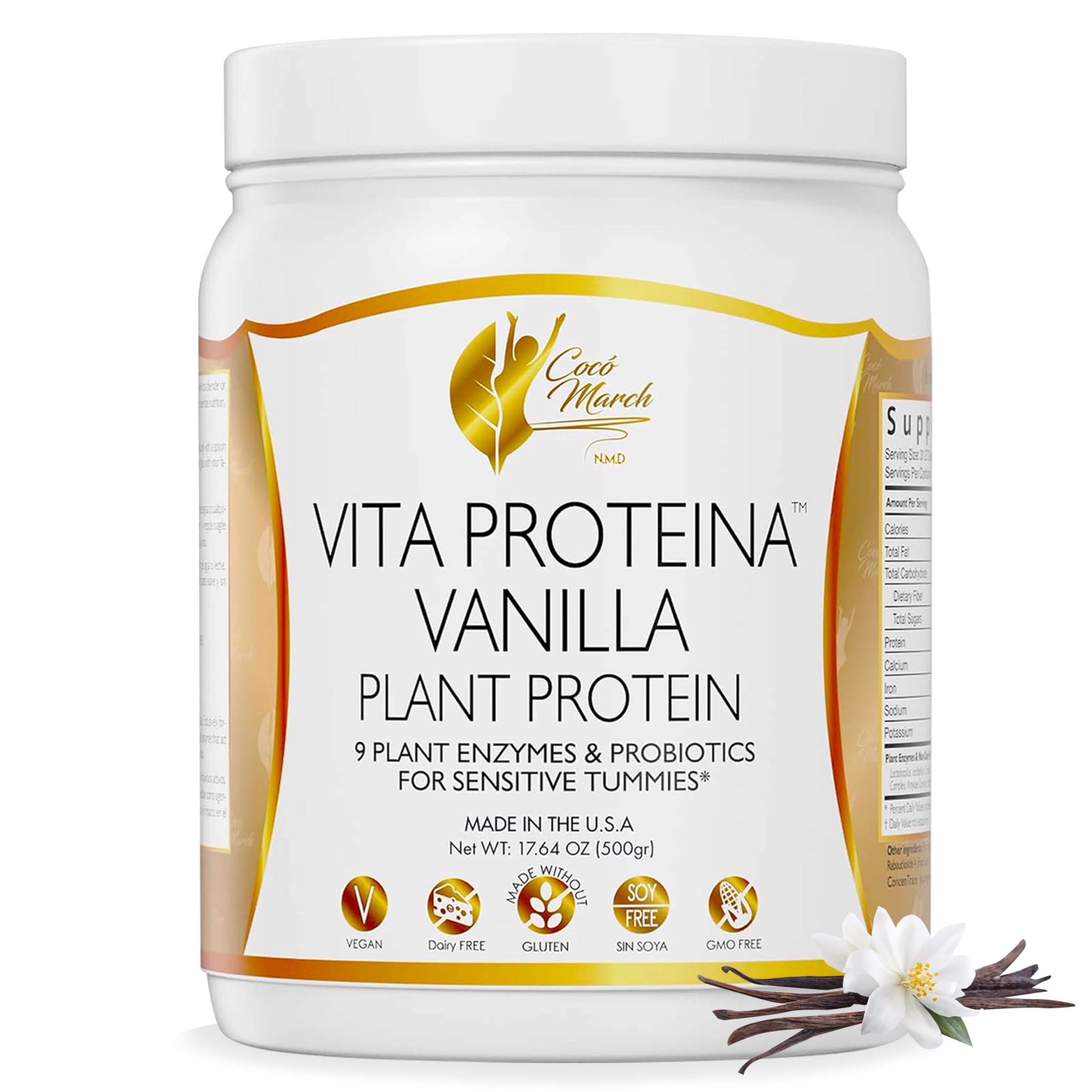 Coc March N.M.D Vita Protein Powder Vegan Vanilla Plant Protein, 20g Protein per Serving with Probiotics & Digestive Enzymes for Sensitive Tummies, Gluten Free, Organic, Dairy Free, Soy Free - 500g