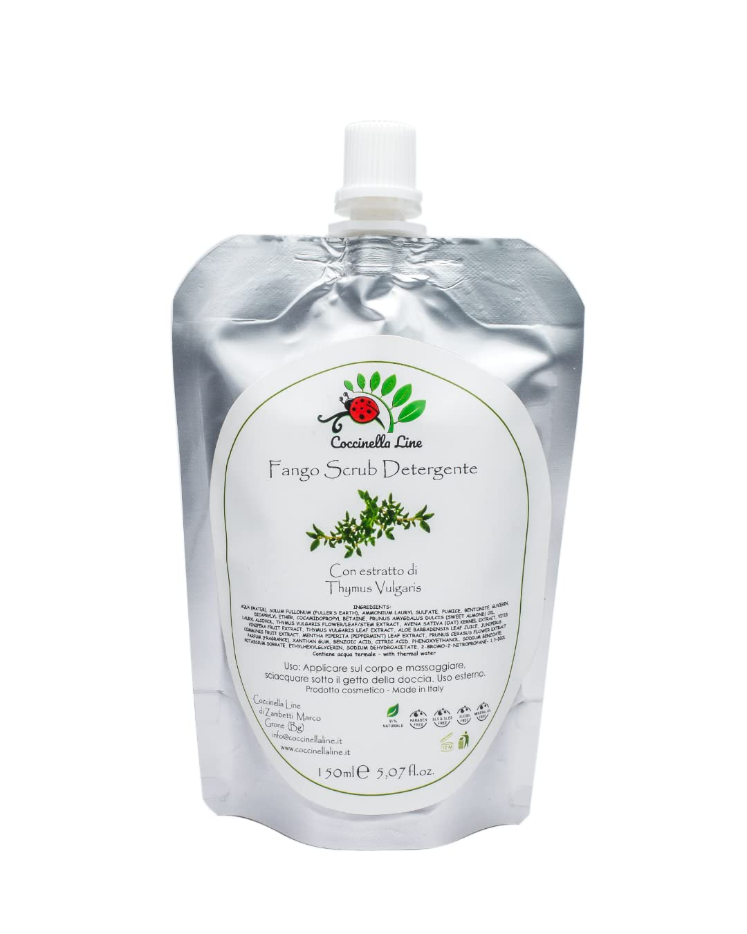 of the reviews (0) The mud scrub is a product with simple and comfortable use. Peeling, smoothing and cleaning with a simple handle. Thyme extract is an excellent natural disinfectant and antibacterial agent, which together with juniper berry and mint extract has an effective prevention against the occurrence of inflammatory or irritating skin and mucous membranes. Gray and yellow clay and cherry blossom extract make the cleanser an excellent detoxifying agent, as they are able to activate contaminants that have accumulated on the skin through tissue regeneration. Pumice stone is rich in mineral salts and is often used for its sharpening ability. Sweet almond oil and aloe vera make the mud peel soft and gentle to the touch, thanks to its moisturizing and nourishing properties. The cheese extract, organic oat extract and red vine, on the other hand, are intended for their great soothing effect. Finally, the thermal water gives the leather a smooth, compact and shiny appearance. Dermatologically tested 91 natural, without parabens, without surfactants, alcohol and without mineral oils. INGREDIENTS Aqua (water), Solum Fullonum (Fuller's Earth), ammonium lauryl sulfate, pumice, bentonite, glycerin, dicapryl ether, cocamidopropyl betaine, prunus amygdalus dulcis (sweet almaan) oil, lauryl alcohol, thymus vulgaris flower le. Extracaf stem-Et, avena sativa (oat) kernel extract, vitis vinifera fruit extract, thymus vulgaris leaf extract, aloe barbadensis leaf juice, juniperus communis fruit extract, mentha piperita (peppermint) leaf extract, prunus cerflower extract, perfume (fragrance), xanthan. Gum, benzoic acid, citric acid, phenoxyethanol, sodium benzoate, potassium sorbate, ethylhexylglycerin, sodium dehydroacetate, 2-bromo-2-nitropane, 1,3-diol with thermal waterWithout parabens, without surfactants, without alcohol and without mineral oils. Dermatologically tested. 91 natural origin. Can be used on both facial skin and body, even several times a week. Peeling, smoothing, cleansing.modder scrub tijm reinigingsmiddel, peeling, gladmakende middelen, met puimsteen microkorrels, talrijke natuurlijke extracten en thermisch water, formaat 150 ml van de beoordelingen (0) De modderscrub is een product met eenvoudig en comfortabel gebruik. Met een eenvoudige handgreep peeling, glad maken en reinigen. Tijm-extract is een uitstekend natuurlijk ontsmettingsmiddel en antibacterieel middel, dat samen met jeneverbes en muntenextract een effectieve preventie heeft tegen het optreden van inflammatoire of irriterende huid- en slijmvliezen. Grijze en gele kleiaarde en kersenbloesemextract maken het reinigingsmiddel tot een uitstekend ontgiftingsmiddel, omdat ze in staat zijn om verontreinigingen die zich op de huid hebben opgehoopt door de weefselregeneratie te activeren. Puimsteen is rijk aan minerale zouten en wordt vaak gebruikt vanwege zijn slijpvermogen. Zoete amandelolie en aloë vera maken de modderpeeling zacht en zacht om aan te raken, dankzij de hydraterende en voedende eigenschappen. Het kaasjextract, het biologische haverextract en de rode wijnstok daarentegen zijn bedoeld voor hun grote rustgevende werking. Ten slotte geeft het thermische water het leer een glad, compact en glanzend uiterlijk. Dermatologisch getest 91 natuurlijk, zonder parabenen, zonder oppervlakte-actieve stoffen, alcohol en zonder minerale oliën. INGREDIËNTEN Aqua (water), Solum Fullonum (Fuller's Earth), ammonium lauryl sulfaat, pumice, bentoniet, glycerine, dicaprylether, cocamidopropyl betaine, prunus amygdalus dulcis (sweet almaan) olie, lauryl alcohol, thymus vulgaris flower le. Extracaf stam-Et, avena sativa (oat) pitel-extract, vitis vinifera fruitextract, thymus vulgaris bladextract, aloë barbadensis bladjuice, juniperus communis fruitextract, mentha piperita (peppermint) leaf extract, prunus cerflower extract, parfum (fragrance ), xanthaan. Gum, benzoic acid, citric acid, fenoxyethanol, natriumbenzoaat, kaliumsorbaat, ethylhexylglycerine, natrium dehydroacetaat, 2-bromo-2-nitropaan, 1,3-diol met thermisch waterZonder parabenen, zonder oppervlakteactieve stoffen, zonder alcohol en zonder minerale oliën. Dermatologisch getest. 91 natuurlijke oorsprong. Kan zowel op de gezichtshuid als op het lichaam worden gebruikt, ook meerdere keren per week. Peeling, gladmakend, reinigend.