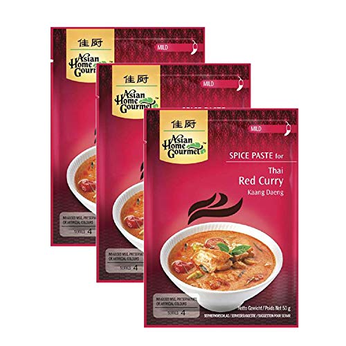 Spice paste mix for preparing a delicious Thai red curry (mild and spicy). Serves 4. Instructions for making Thai red curry: Heat the oil in a saucepan over medium heat. Add the spice mix and cook for 1 minute. Add half a can of coconut milk. Cook for 3 minutes until only oil remains. Add the meat (400g chicken) and cook for 5 minutes. Add the remaining coconut milk and some vegetables. Cook everything together. Garnish and serve hot with rice. Avoid direct sunlight. Net weight: 50g INGREDIENTS Soybean oil, garlic, cayenne pepper, shallot, sugar, lemongrass, salt, galangal, pineapple juice, dried shrimp, fish sauce (butcher's extract, salt, sugar), kaffir lime, herbs and spices. INSTRUCTIONS Heat the oil in a saucepan over medium heat. Add the spiced sauce and cook for 1 minute. Add half a can of coconut milk. Cook for 3 minutes until only oil remains. Add the meat (400g chicken) and cook for 5 minutes. Add the remaining coconut milk and some vegetables. Cook everything together. Garnish and serve hot with rice. See moreCurry rouge en pâte - 50 g x 3 unités Viande 50 g (Paquete de 3)DESCRIPTION DU PRODUIT DESCRIPTION DU PRODUIT Mélange d'épices en pâte pour préparer un délicieux curry rouge thaïlandais (doux et épicé). Pour 4 personnes. Mode d'emploi pour faire du curry rouge thaï : chauffer l'huile dans une casserole à feu moyen. Ajoutez la sauce aux épices et faites cuire pendant 1 minute. Ajoutez une demi-boîte de lait de coco. Cuire pendant 3 minutes jusqu'à ce qu'il ne reste que de l'huile. Ajouter la viande (400 g de poulet) et cuire pendant 5 minutes. Ajoutez le reste du lait de coco et quelques légumes. Cuisinez tout ensemble. Garnir et servir chaud avec du riz. Évitez l'exposition directe au soleil. Poids net : 50 g INGRÉDIENTS Huile de soja, ail, poivre de Cayenne, échalote, sucre, herbe citronnée, sel, galanga, jus d'ananas, crevettes déshydratées, sauce de poisson (extrait de boucherie, sel, sucre), citron vert kaffir, herbes et condiments. MODE D'EMPLOI Faites chauffer l'huile dans une casserole à feu moyen. Ajoutez la sauce aux épices et faites cuire pendant 1 minute. Ajoutez une demi-boîte de lait de coco. Cuire pendant 3 minutes jusqu'à ce qu'il ne reste que de l'huile. Ajouter la viande (400 g de poulet) et cuire pendant 5 minutes. Ajoutez le reste du lait de coco et quelques légumes. Cuisinez tout ensemble. Garnir et servir chaud avec du riz. Voir plus