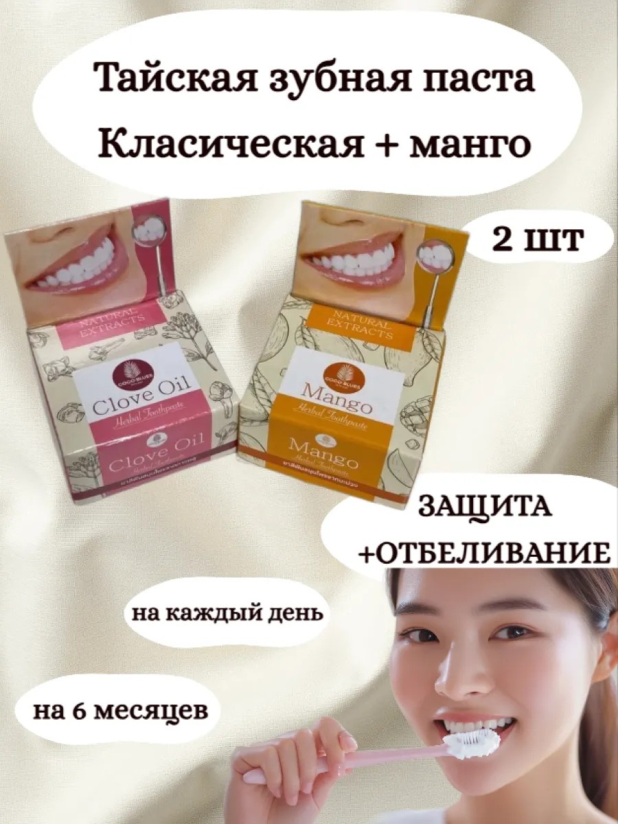 Откройте для себя уникальную тайскую отбеливающую зубную пасту с манго, бамбуком, мангостином, гвоздикой которая подарит вашим зубам ослепительную белизну и свежесть. Этот продукт, созданный с использованием натуральных ингредиентов, стал настоящей находкой для тех, кто ищет эффективную и безопасную альтернативу традиционным зубным пастам.