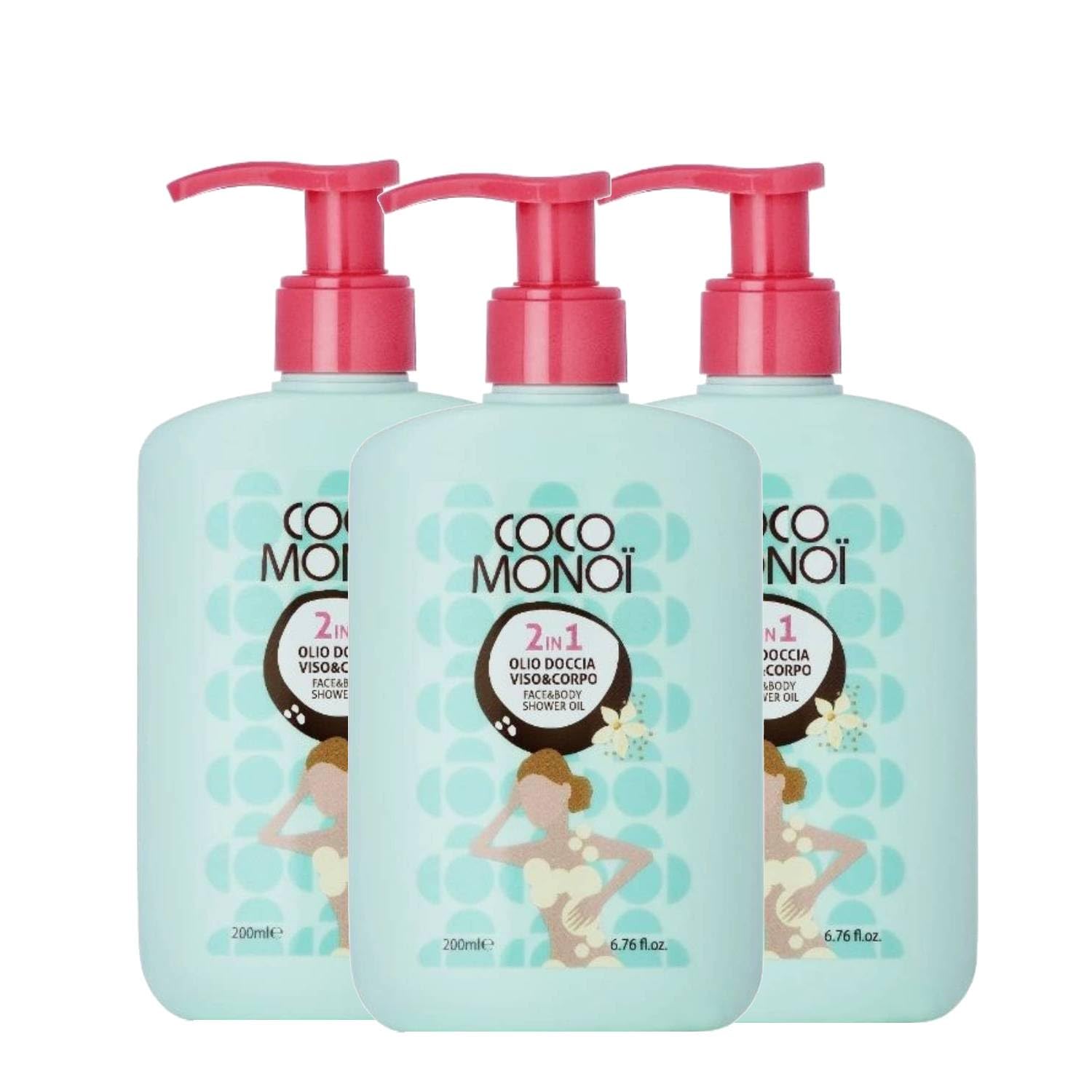 Coco Monoi 2-in-1 Face Body Shower Oil, enriched with the line's signature fragrance, contains lauric acid, known for its nourishing properties. Upon contact with water, its texture transforms into a soft, silky lather that envelops the skin in a floral embrace. Like all products in the Coco Monoi line, this is a multi-tasking product, with 2 functions in 1: body cleansing oil and face cleansing oil for use in the shower. Key Features: 2-in-1 Formula: Designed for use on both face and body, simplifying your daily beauty routine. Coconut Oil: Rich in lauric acid, known for its nourishing and moisturizing properties. Soft Texture: Upon contact with water, it transforms into a light lather that gently embraces the skin. Enveloping Fragrance: Notes of coconut and Tiare flowers for a unique sensory experience. Suitable for All Skin Types: Ideal for those seeking a gentle yet effective product. Convenient 200ml size: ideal for everyday use and travel. Directions: Apply the product to damp skin on the face and body in the shower and rinse. Size: 200ml INGREDIENTS Coconut and Tiare Flowers SAFETY WARNING For external use only See moreFOR ALL SKIN TYPES - Ideal for daily use, even on sensitive skin. Perfect for those seeking a convenient and sensorial 2-in-1 product. Silky, non-greasy texture – Its light, velvety formula rinses easily without leaving any residue, leaving skin clean and radiant. Enveloping tropical fragrance – The sensual scent of coconut and tiare flowers gives skin an exotic and relaxing aroma, for a moment of daily well-being. Nourishing and moisturizing action – Enriched with coconut oil and soothing ingredients, it helps keep skin soft, supple, and well-hydrated, even in the shower. Gentle 2-in-1 cleanser – Formulated for both face and body, this shower oil combines deep cleansing and skincare, making your daily routine simple and complete.Coco Monoi Huile de douche pour le visage et le corps 2 en 1 – Nourrissant et hydratant au parfum de noix de coco et fleurs de tiaré, peau douce et parfumée, 200 ml (3 unités)DESCRIPTION DU PRODUIT DESCRIPTION DU PRODUIT Coco Monoi 2 en 1 Huile de douche visage corps, enrichi avec la fragrance emblématique de la ligne, contient de l'acide laurique aux propriétés nutritives connues. La texture au contact de l'eau crée une mousse douce et soyeuse qui enveloppe la peau dans une étreinte florale. Comme tous les produits de la ligne Coco Monoi est un produit multitâche, avec 2 fonctions en 1 : huile nettoyante corps huile nettoyante visage sous la douche. Caractéristiques principales : Formule 2 en 1 : conçue pour une utilisation sur le visage et le corps, ce qui facilite la routine de beauté quotidienne. Huile de coco : riche en acide laurique, connu pour ses propriétés nourrissantes et hydratantes. Texture douce : au contact de l'eau, elle se transforme en mousse légère qui enveloppe la peau en un câlin délicat. Parfum enveloppant : notes de coco et fleurs de Tiaré pour une expérience sensorielle unique. Convient à tous les types de peau : idéal pour ceux qui recherchent un produit délicat mais efficace. Format pratique de 200 ml : idéal pour un usage quotidien et en voyage. Utilisation : Appliquer le produit sous la douche sur la peau humide du visage et du corps et rincer. Format : 200 ml INGRÉDIENTS Noix de coco et fleurs de tiaré AVERTISSEMENT DE SÉCURITÉ Usage extérieur uniquement Voir plusPOUR TOUS LES TYPES DE PEAU - Idéal pour un usage quotidien, même sur les peaux sensibles. Parfait pour ceux qui recherchent un produit 2 en 1 pratique et sensoriel. Texture soyeuse et non grasse – Sa formule légère et veloutée se rince facilement sans laisser de résidus, laissant la peau propre et lumineuse. Parfum tropical enveloppant – La fragrance sensuelle de noix de coco et de fleurs de tiaré donne à la peau un arôme exotique et relaxant, pour un moment de bien-être quotidien. Action nourrissante et hydratante – Enrichi en huile de coco et en ingrédients apaisants, il aide à garder la peau douce, élastique et bien hydratée, même sous la douche. Nettoyant délicat 2 en 1 – Formulé pour le visage et le corps, cette huile de douche allie nettoyage en profondeur et soin de la peau, rendant la routine quotidienne simple et complète.