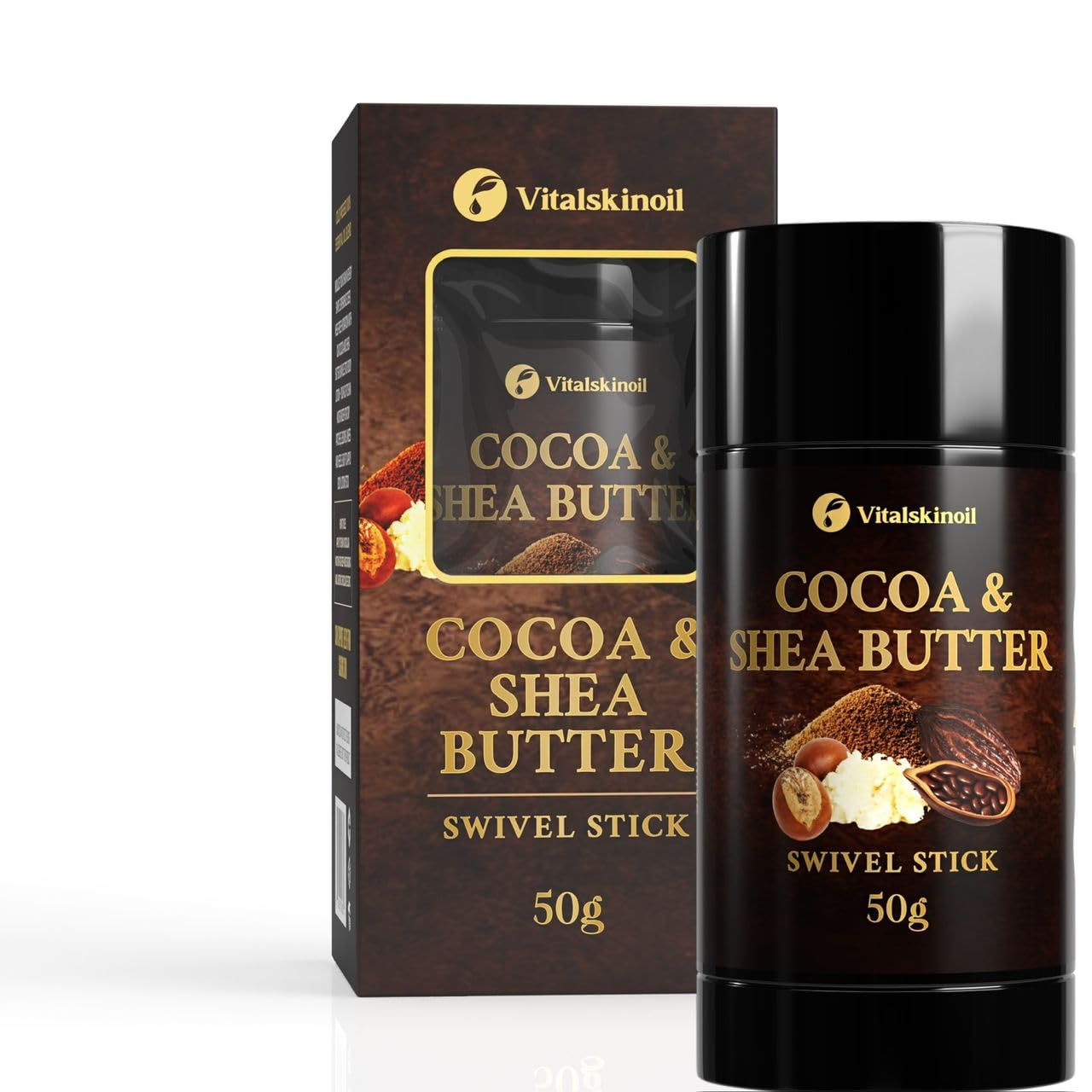 PORTABLE SIZE: Compact 50g size makes it ideal for travel and everyday carry while delivering concentrated moisturizing benefits. VERSATILE USE: Perfect for targeting dry areas and on-the-go moisturizing, suitable for all skin types and daily use. MOISTURIZING FORMULA: Rich combination of cocoa powder, cocoa butter and shea butter provides deep hydration and nourishment to help soften and condition skin. CONVENIENT DESIGN: Innovative swivel stick packaging allows for precise, mess-free application while keeping the product fresh and protected. NATURAL INGREDIENTS: Premium blend of cocoa and shea butter in a convenient 50g swivel stick format for easy application and nourishing skin care.