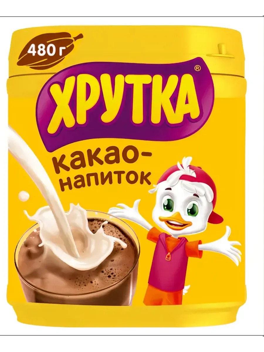 Khrutka Instant Cocoa Drink, 480 g. Start your morning with the new Khrutka cocoa drink – so delicious and exciting! Quick and convenient: add 2 teaspoons of Khrutka cocoa to a glass of milk, and a delicious breakfast drink is ready! Milk contains calcium, essential for strong and healthy bones. And with the delicate chocolate flavor of Khrutka cocoa drink, drinking milk tastes even better. Cocoa powder is also a natural source of magnesium, iron, and phosphorus. Khrutka is suitable for preschool and school-age children. One, two – and delicious!