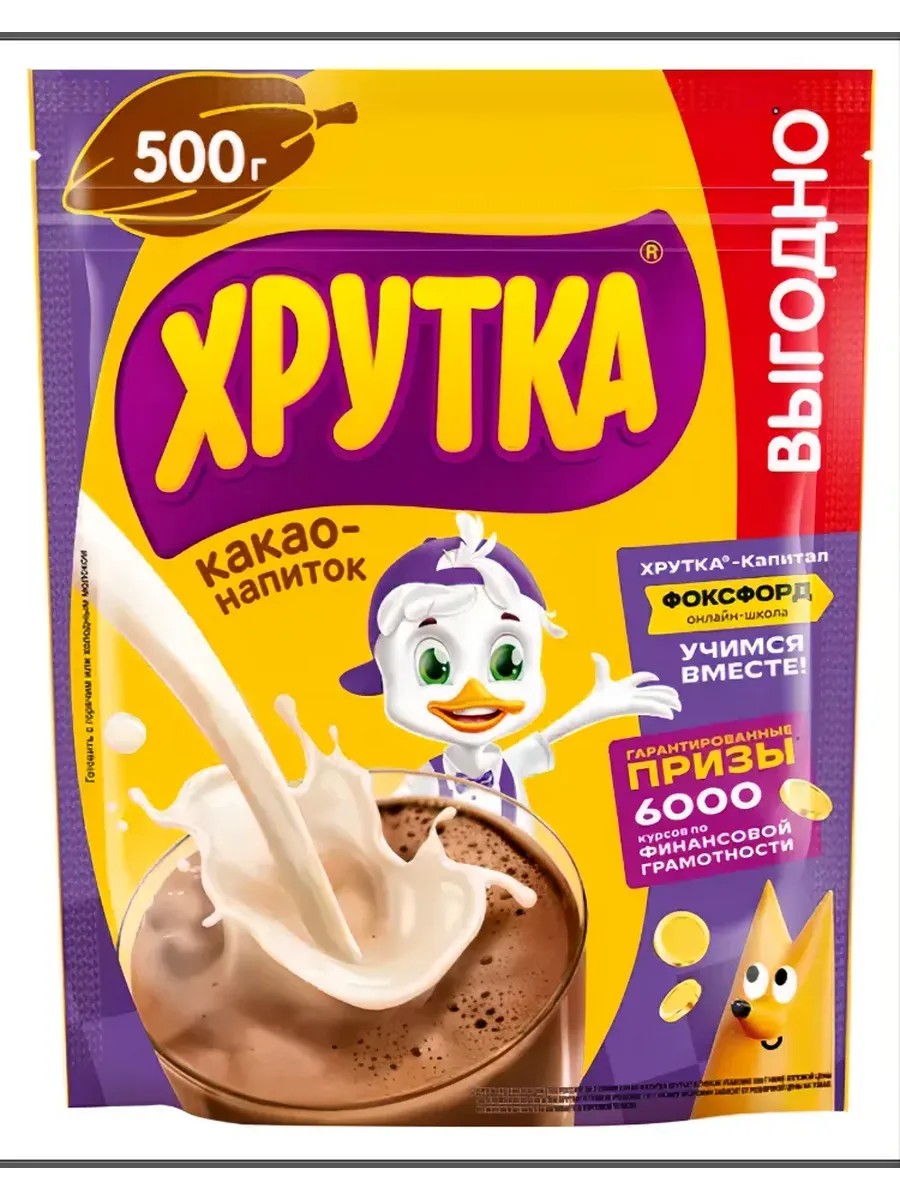 Какао-напиток ХРУТКА быстрорастворимый, 500 г.Начать утро с новым какао-напитком ХРУТКА – так вкусно и увлекательно! Быстро и удобно: добавьте 2 чайные ложки какао ХРУТКА в стакан молока – и вкусный напиток для завтрака готов!