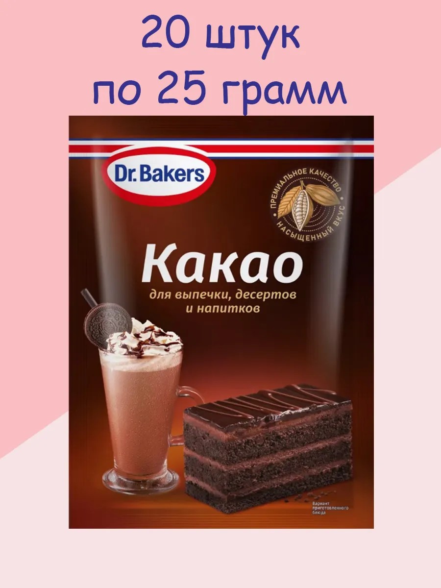 Какао для выпечки десертов и напитков 25 грамм 20шт